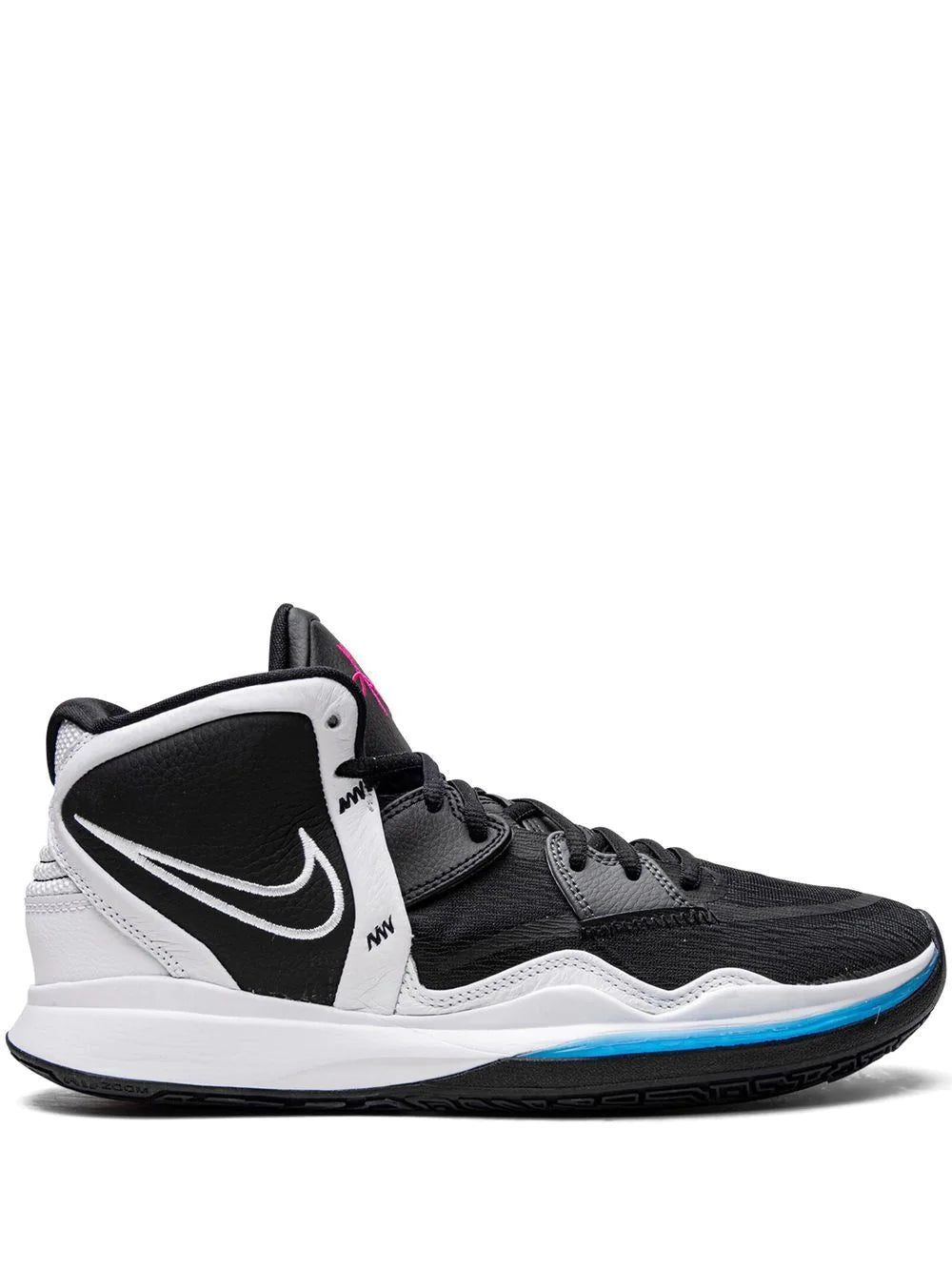 Nike's Kyrie Infinity now appears dressed in a black and white colour scheme. This pair upper uses mesh and leather detailed with a graphic pattern placed on the majority of the upper, Kyrie logos on the tongue and heels. Underneath a rubber outsole adds comfort and traction to the shoe.