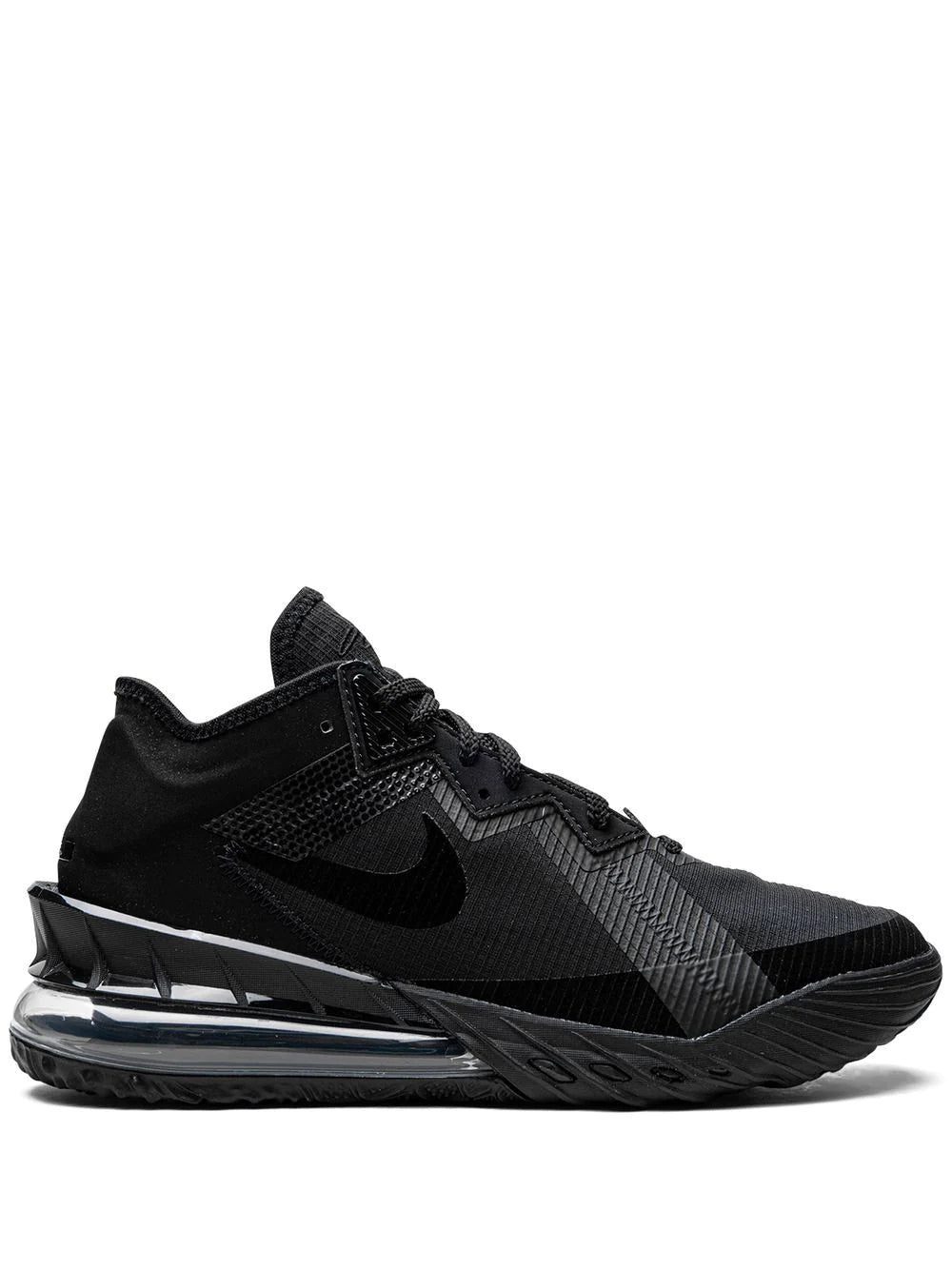 Nike's LeBron 18 Low now arrives in a full black design. This pair is built with black textile across the upper while synthetic appears on the overlays and a tonal Swoosh logo decorates the sides. Underneath, a Nike React sole and a transparent Air unit add comfort and cushion on every step.