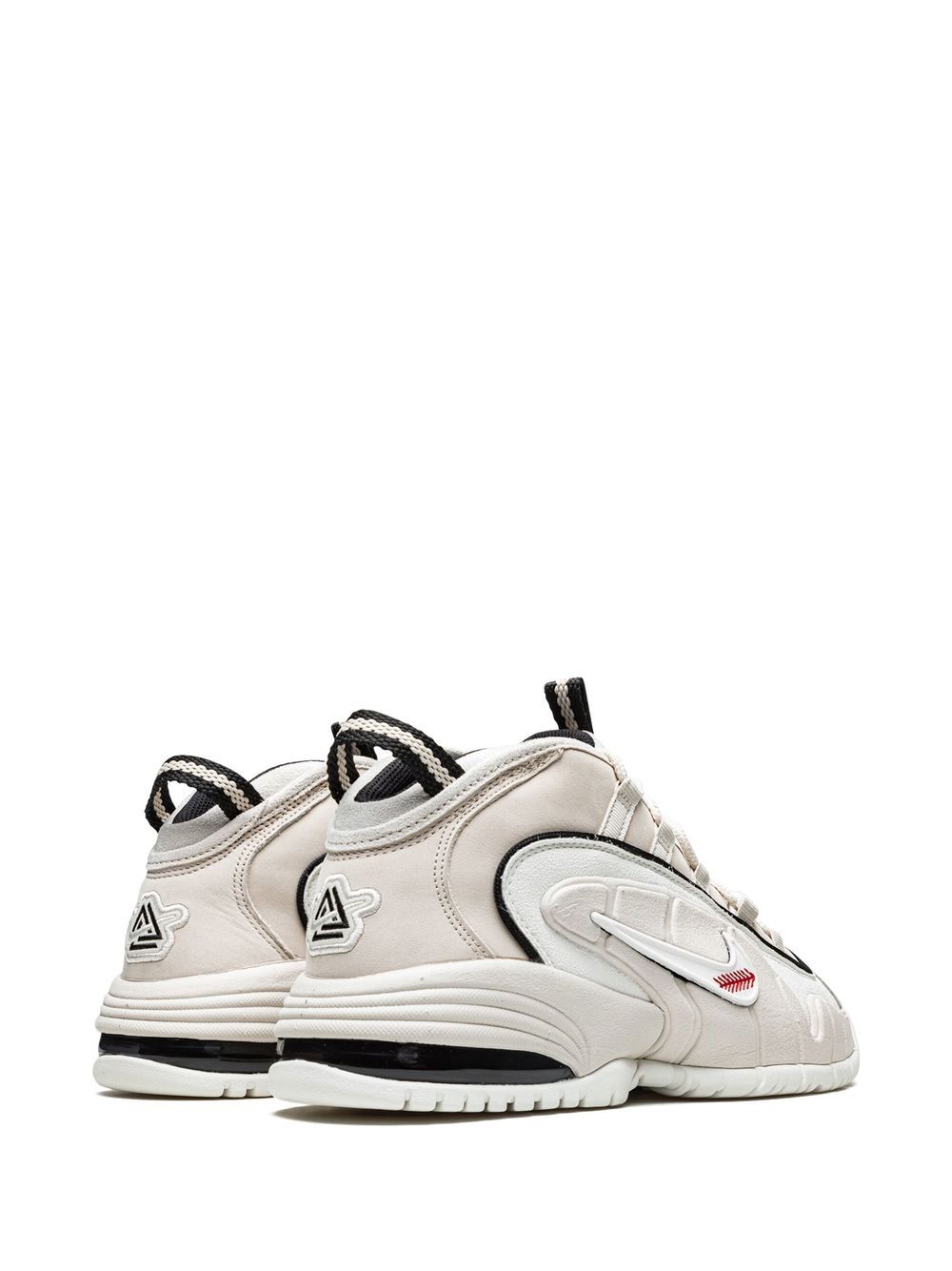 The Nike x Social Status Air Max Penny 1 sneaker comes dressed in a cream-white hue. This pair is crafted from suede and features five different interchangeable touch-strap Swooshes, each representing a different sport - baseball, basketball, football, tennis, and golf. Underneath, a rubber sole adds comfort and traction to the design.