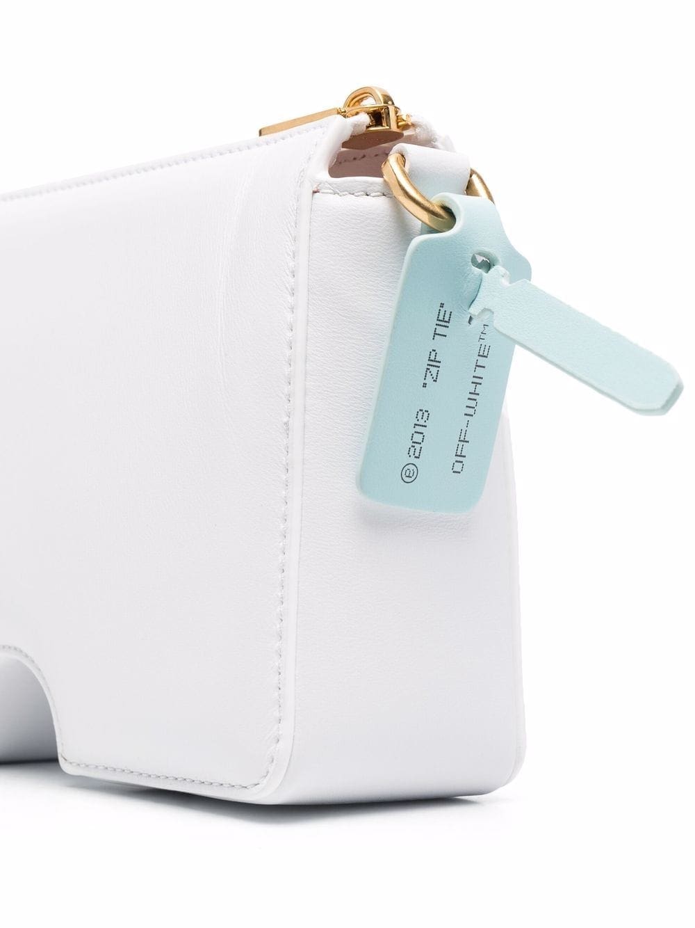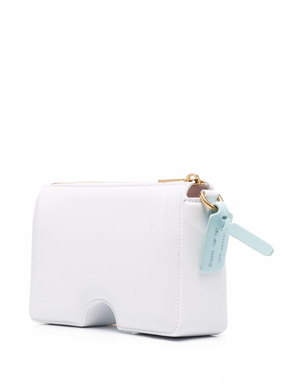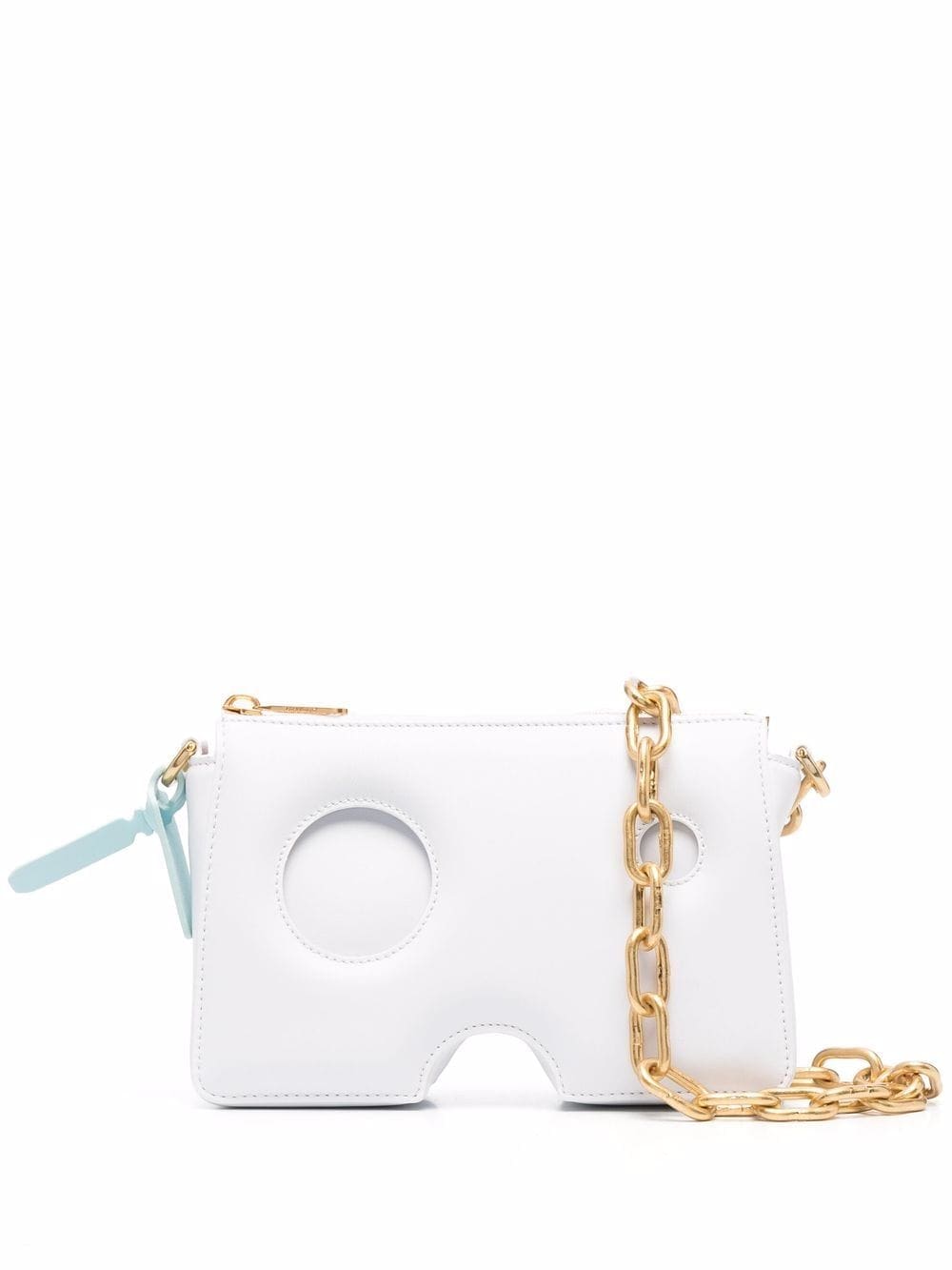 Off-White's signature Burrow bag is defined by its structural cut-out detailing that is significant to the label's deconstructive aesthetic. The accessory appears here in a 20cm-wide iteration, finished with a gold-tone chain-link shoulder strap accented with the brand's iconic zip-tie tag.