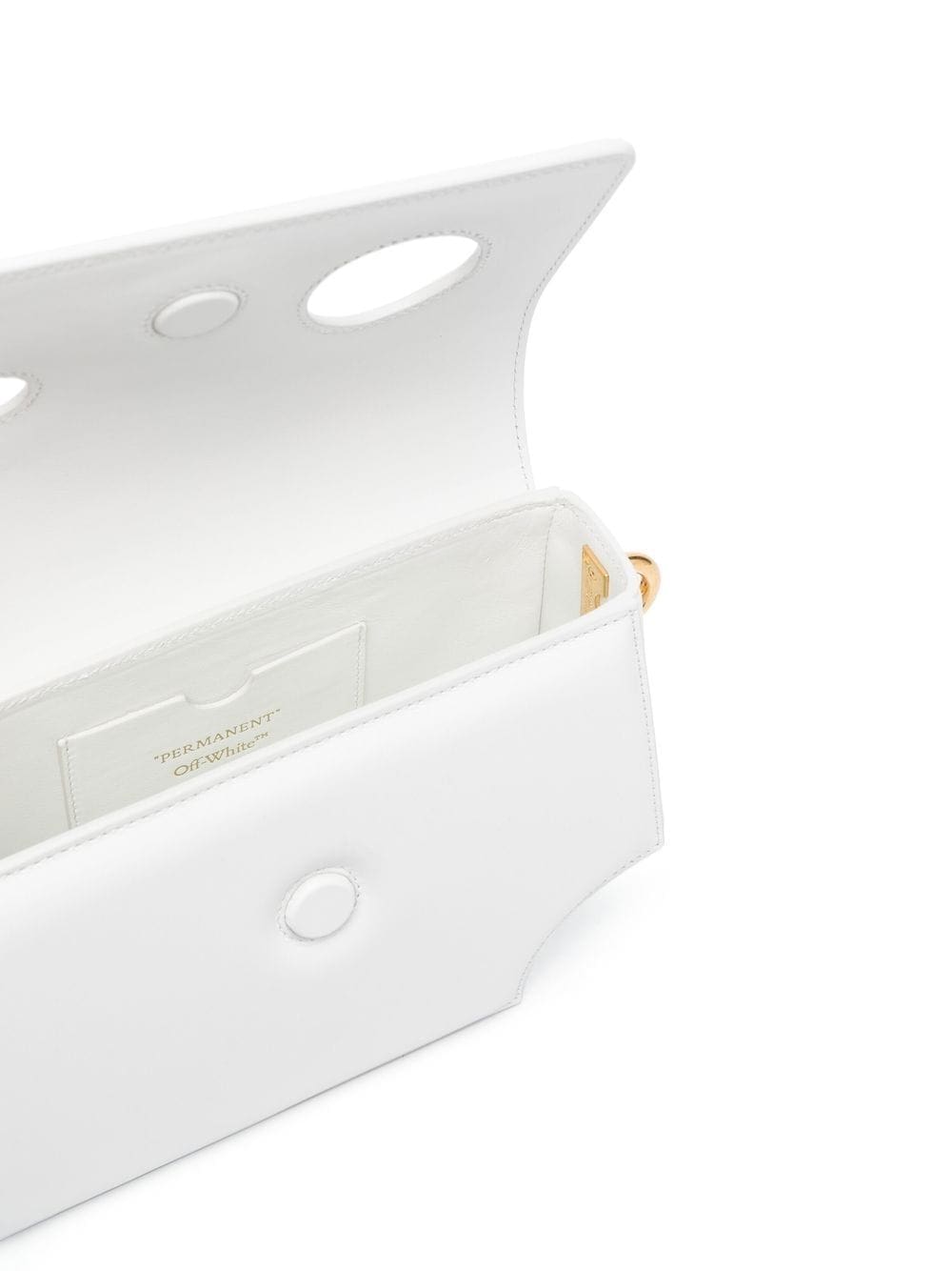 Off-White's Burrow 24 shoulder bag stands out thanks to its signature cut-out details. This bag is crafted from white leather and comes with a detachable shoulder strap and a gold-tone chain-link shoulder strap.