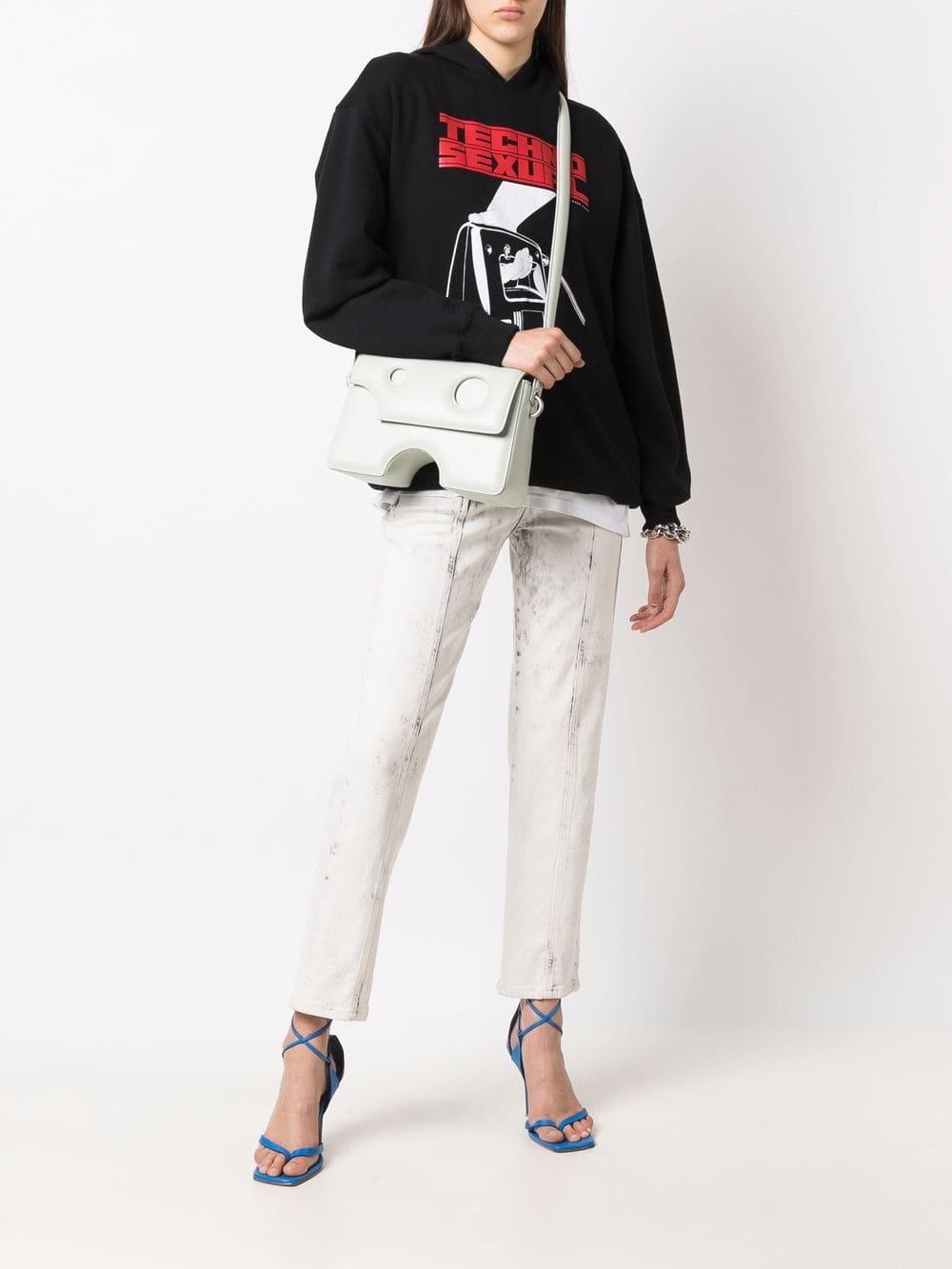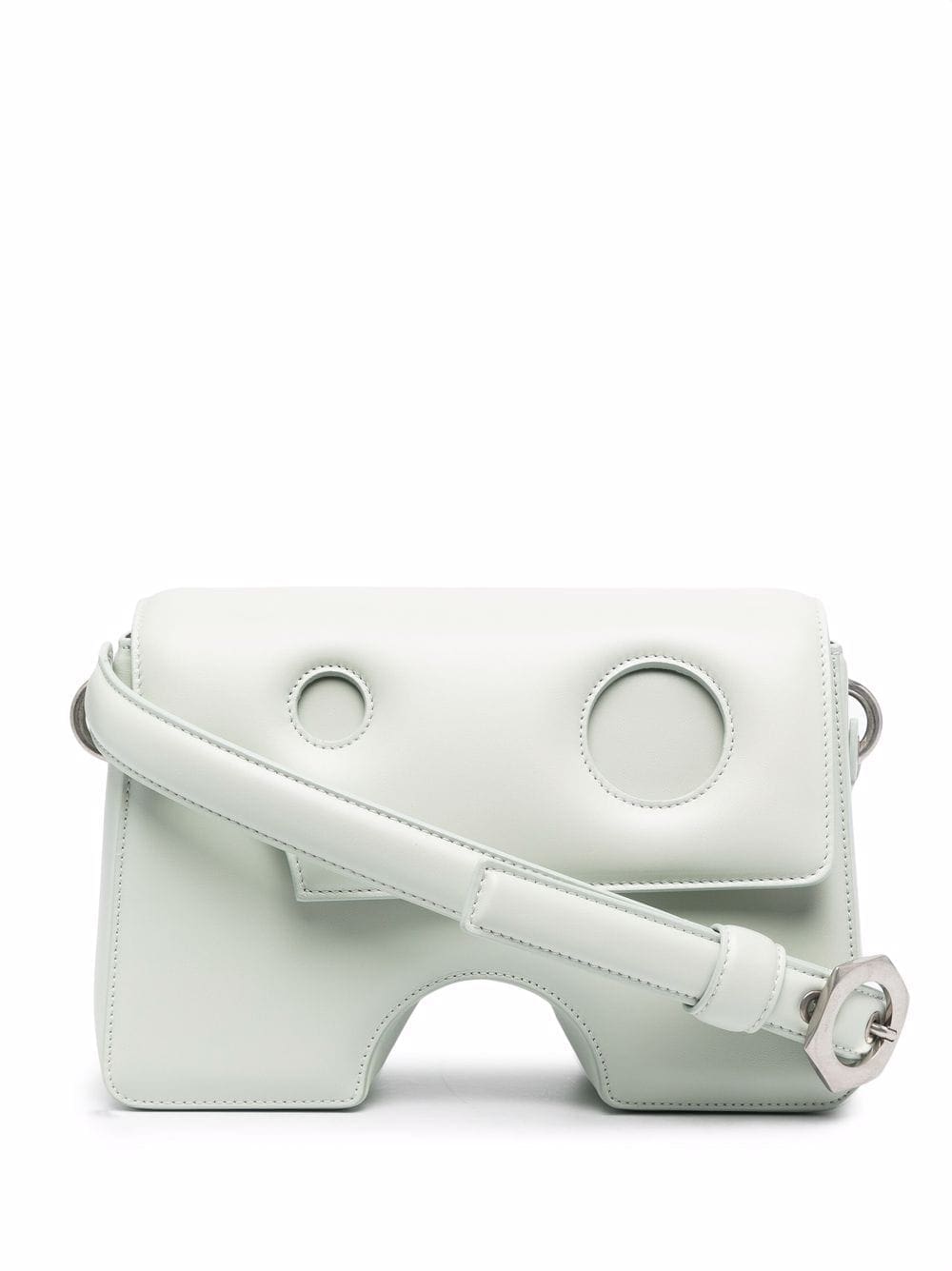 Signature Meteor cut-out detailing punctuates the Burrow-27 crossbody bag. Accented with silver-tone hardware, its curved-edge leather design is complemented by a completely tonal sage-green leather design for a contemporary take.Â