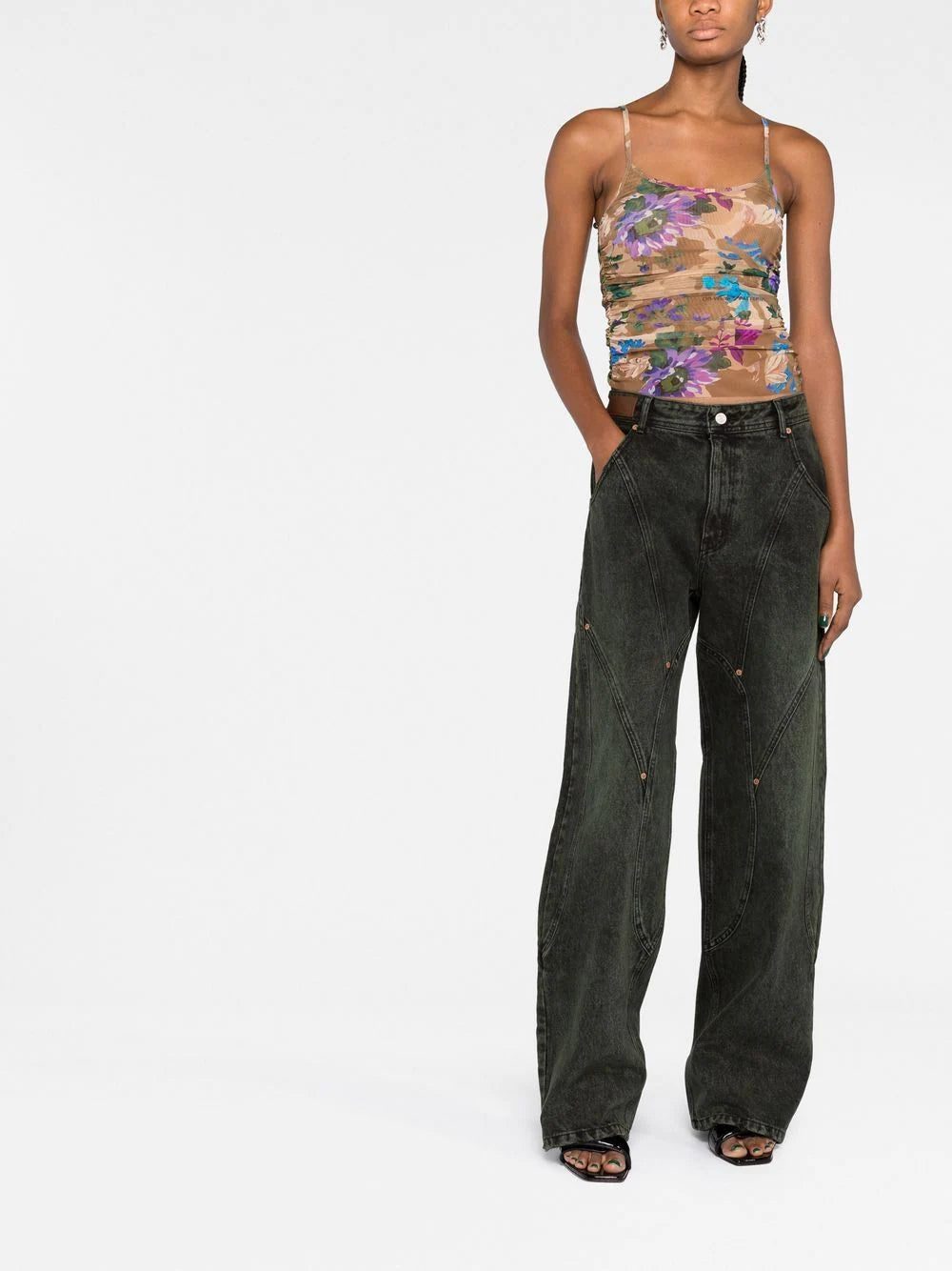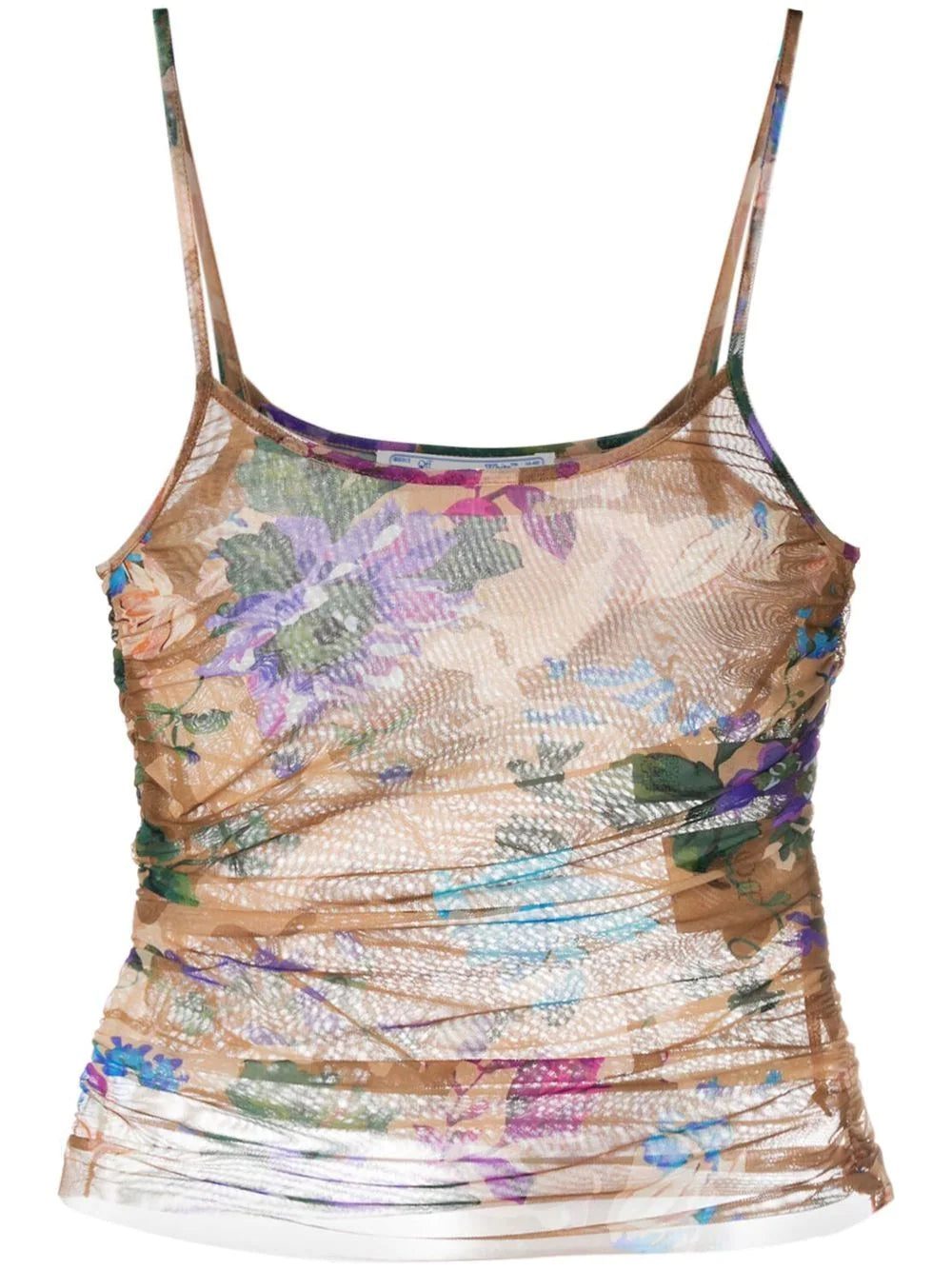 Off-White gives a rather delicate finish to this draped tank top. With a camouflage-patterned background, it is covered with an unexpected multicoloured floral print.