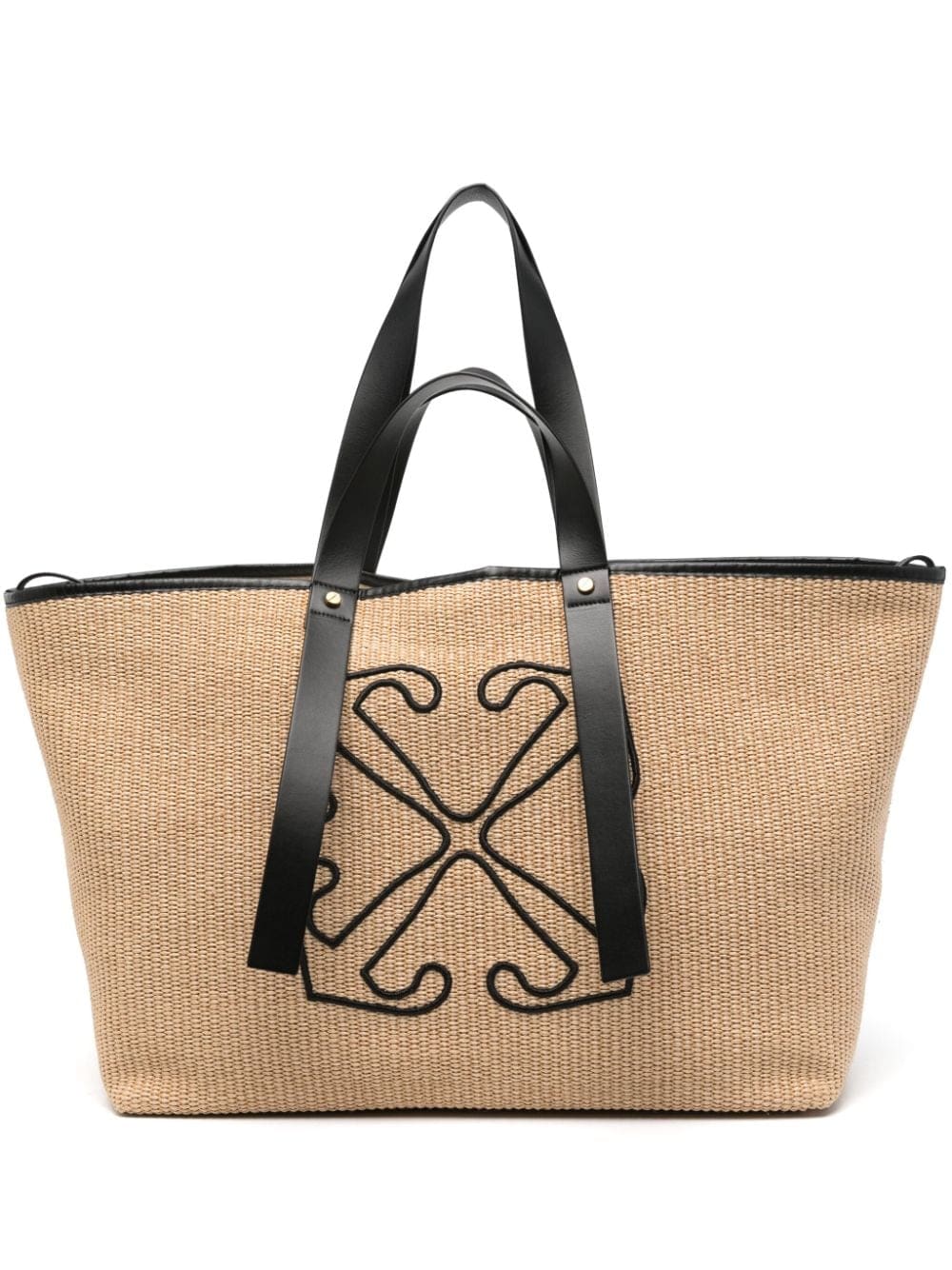 Combining distinctive details with a minimalist style, Off-White presents this tote bag. Rendered in beige raffia, the contrasting black Arrows motif takes centre stage for an instantly recognisable finish.