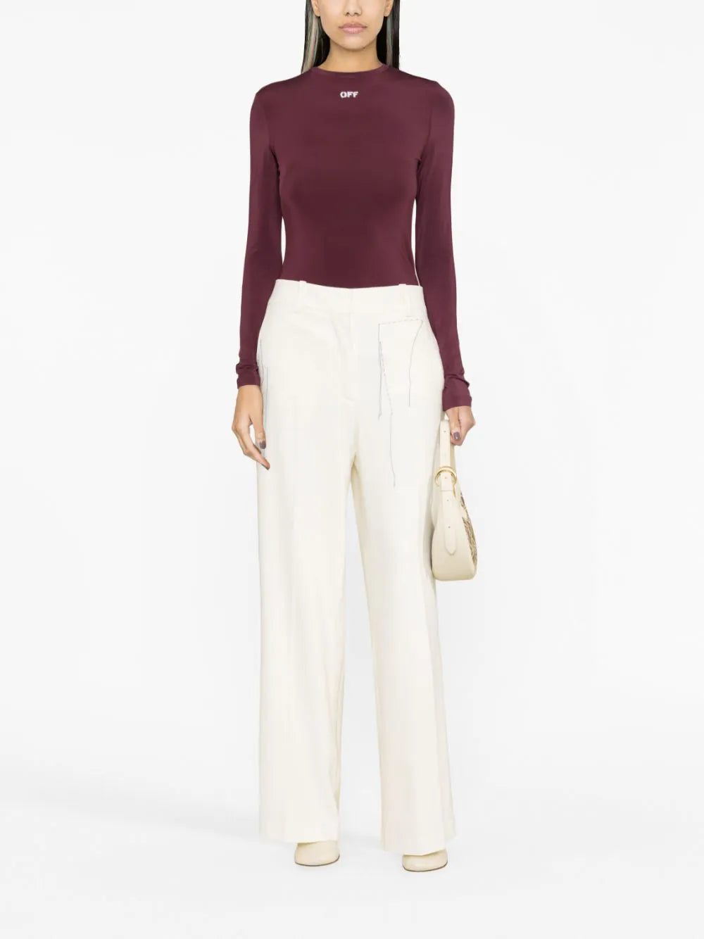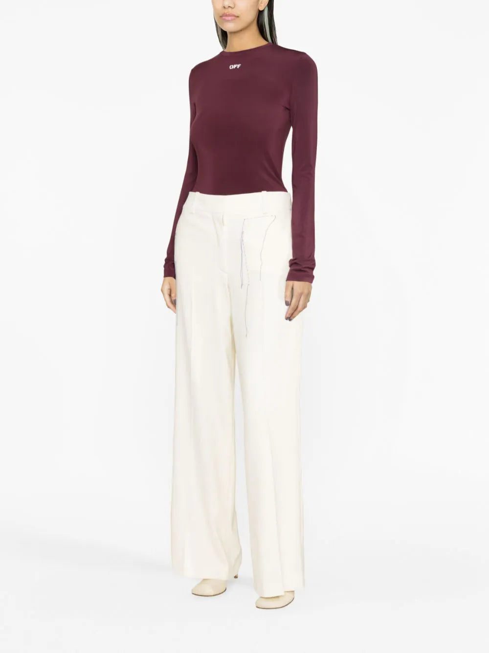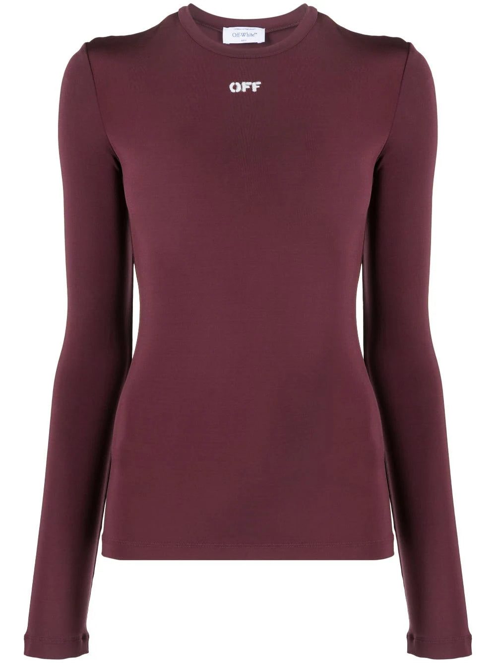 Rendered in a burgundy hue, this Off-White top is cut to a fitted silhouette and printed with a contrasting logo at the front.