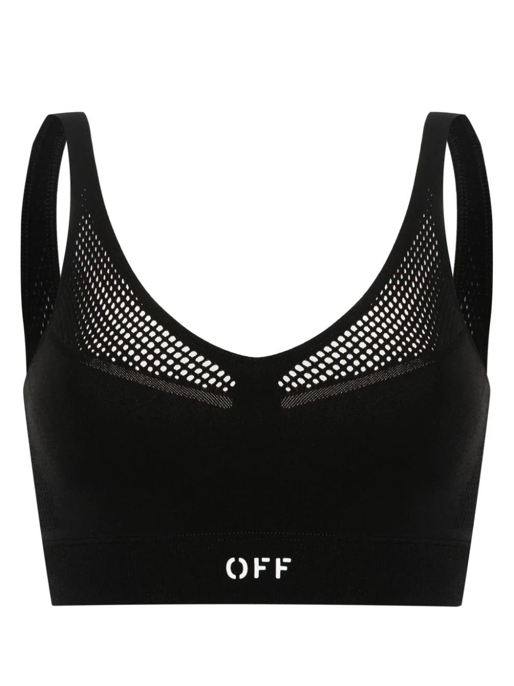 Off-White focuses on minimalism with this sports bra. Imagined in black, it's subtly elevated with the brand's OFF logo on the front. A mesh panel on the back assures breathability.