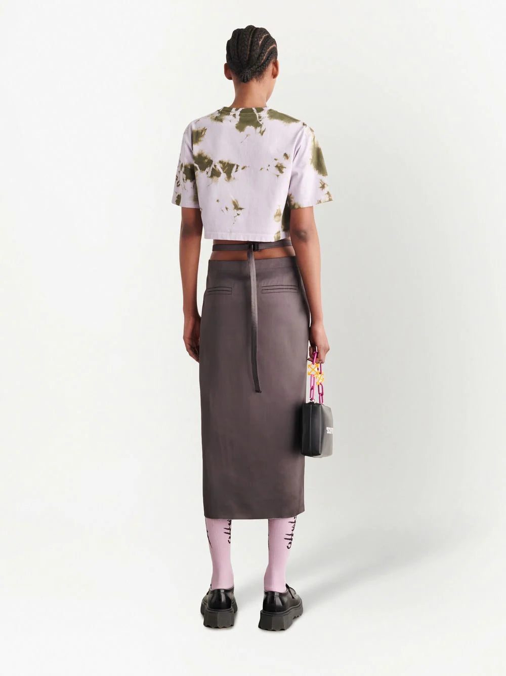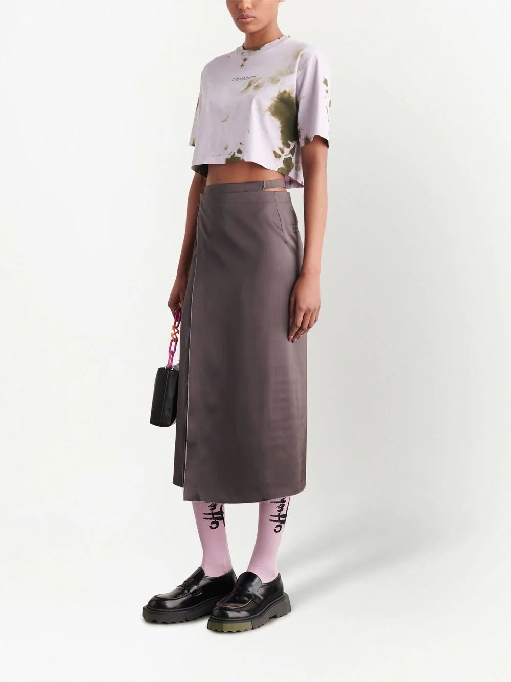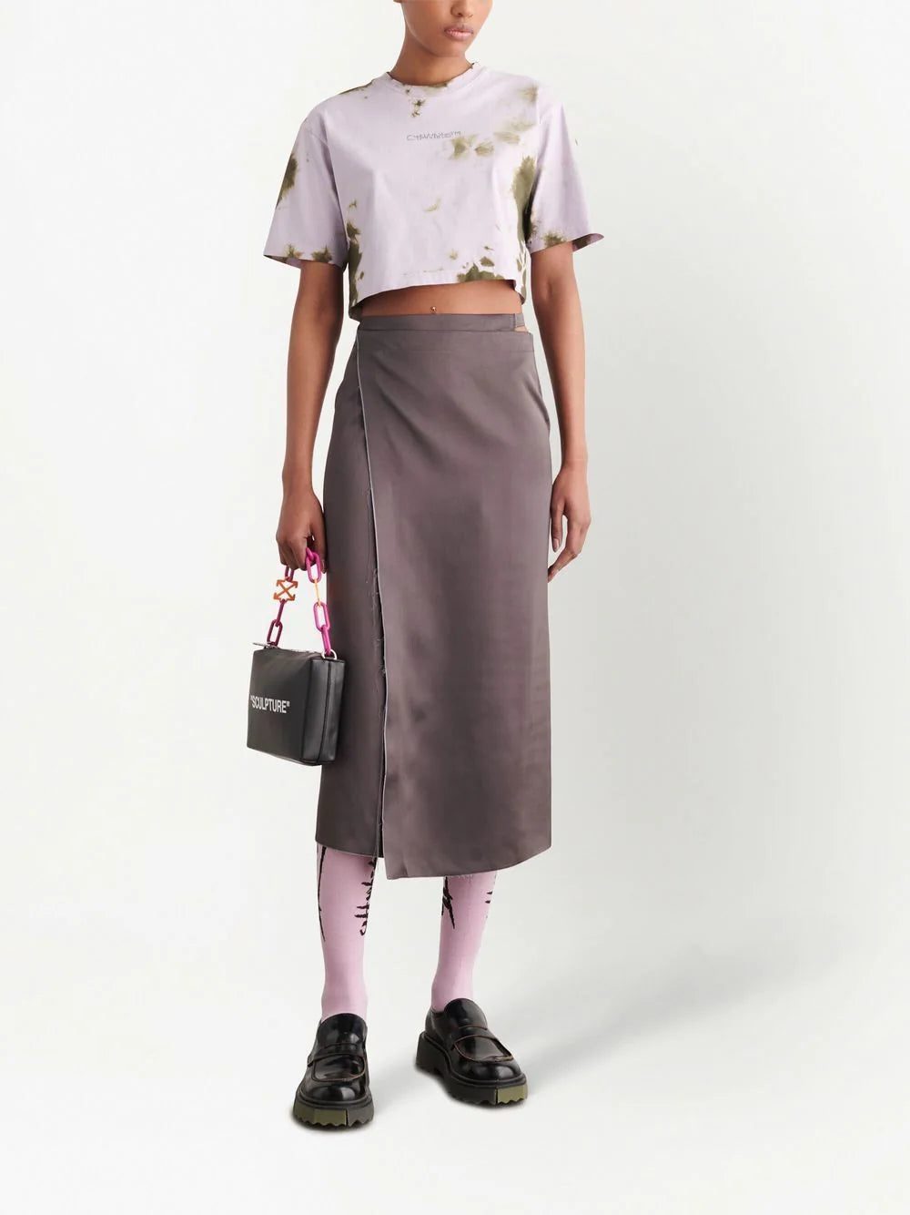 Off-White's off-duty style is presented by this cropped T-shirt for AW22. This cotton construction is defined by an all-over tie-dye print, reminiscent of the brand's street style aesthetic. In addition, this short sleeve design is further elevated by crystal-embellished logo lettering for a branded finish.
