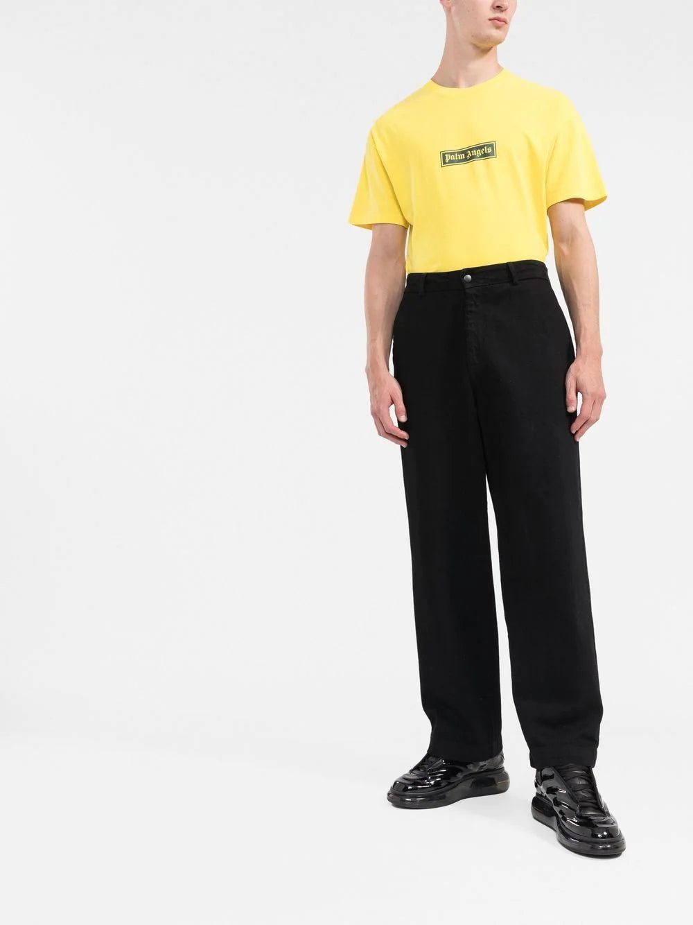 logo-print cotton T-shirt from PALM ANGELS featuring yellow, black, cotton, logo print at the chest, round neck, short sleeves and straight hem.