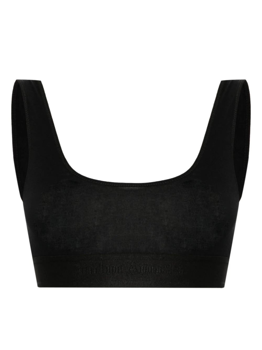 Cut with a scoop-back design and woven with stretch, this Palm Angels sports bra is decorated with logo lettering on the underband.