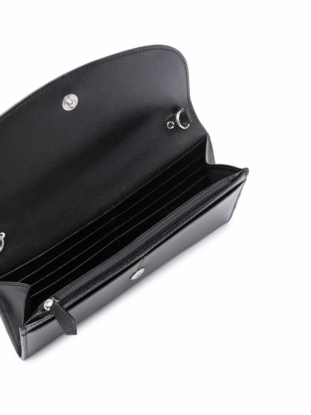 black calf leather logo plaque foldover top with magnetic fastening internal card slots internal zip-fastening pocket detachable strap