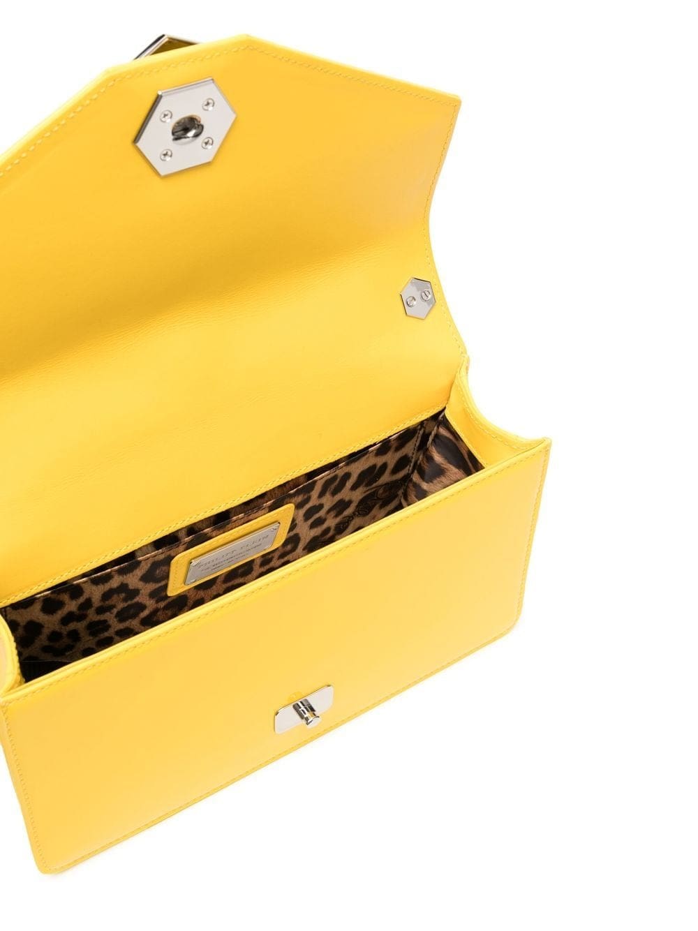 yellow patent finish quilted logo plaque foldover top clasp fastening main compartment internal slip pocket sliding chain-link shoulder strap