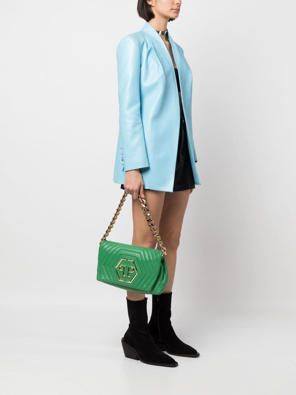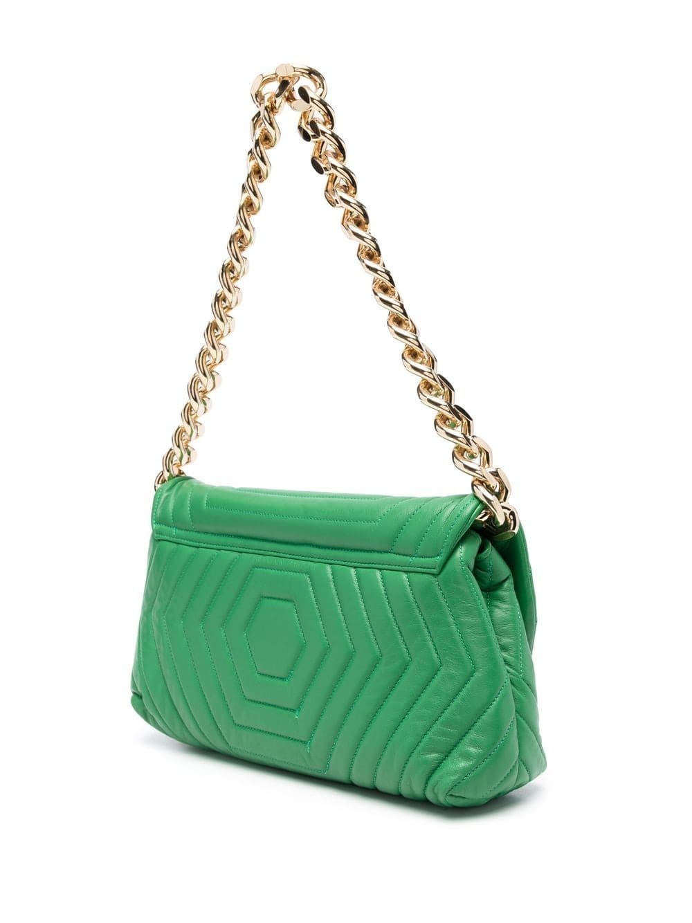 bright green calf leather matelassé effect gold-tone logo plaque foldover top with magnetic fastening chain-link shoulder strap