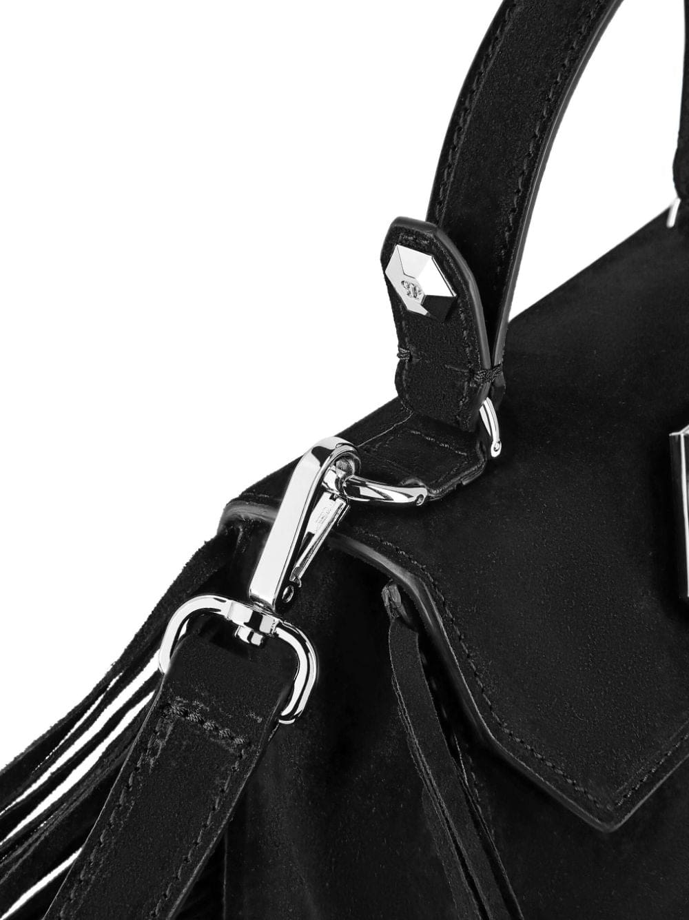 Displaying a boxy silhouette, Philipp Plein's Superheroine bag is presented here in a small size. Boasting long fringes to the sides, the accessory is made from suede.