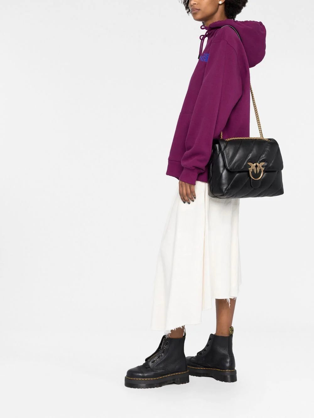 PINKO's signature bag silhouette, the Love, is defined by the large Love Bird buckle on the front. The brand's iconic motif stands as a symbol of 'love and freedom, strength and light' that define the label's aesthetic.