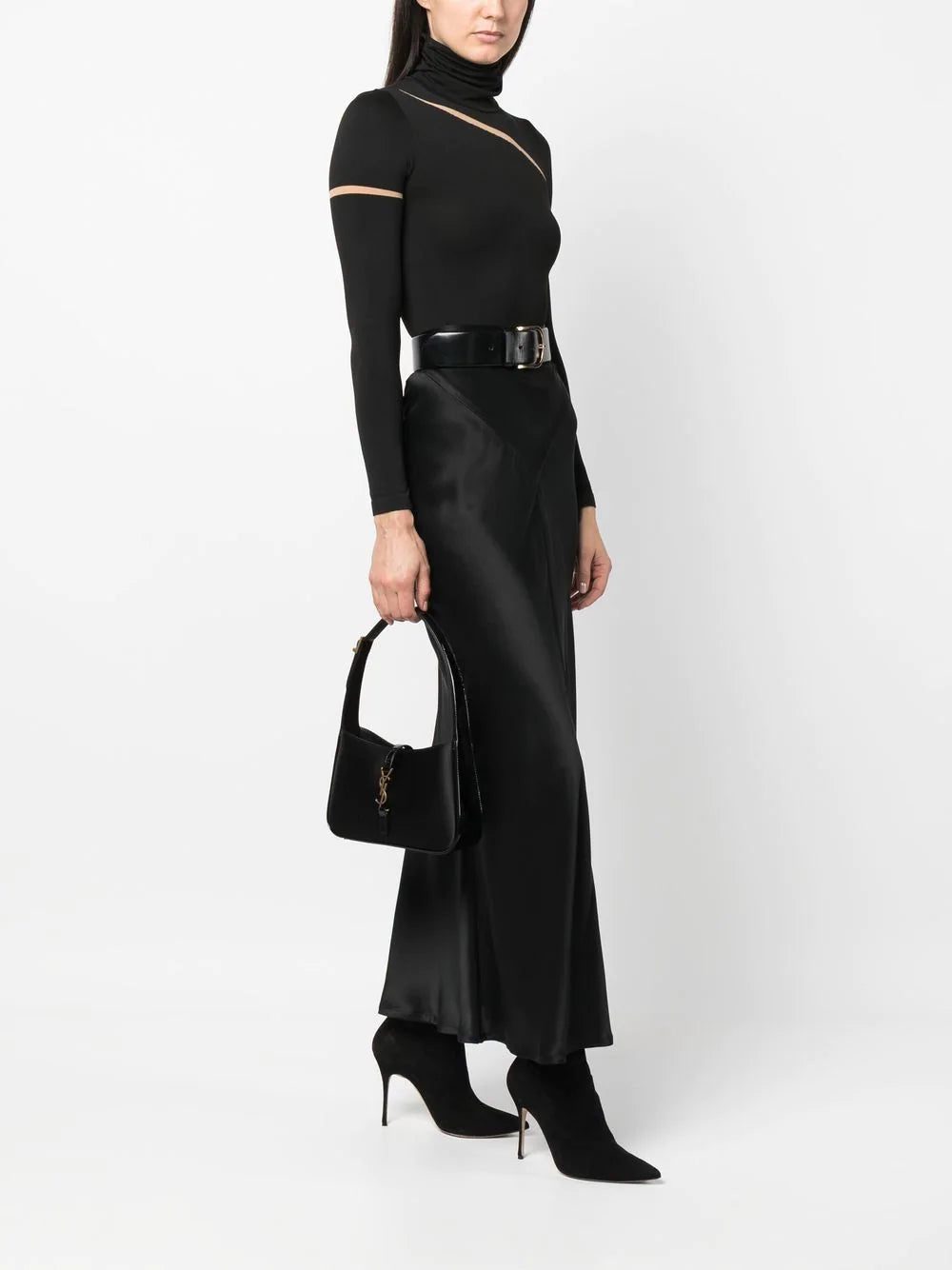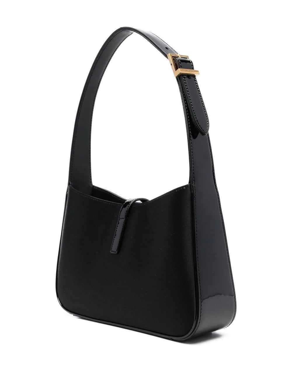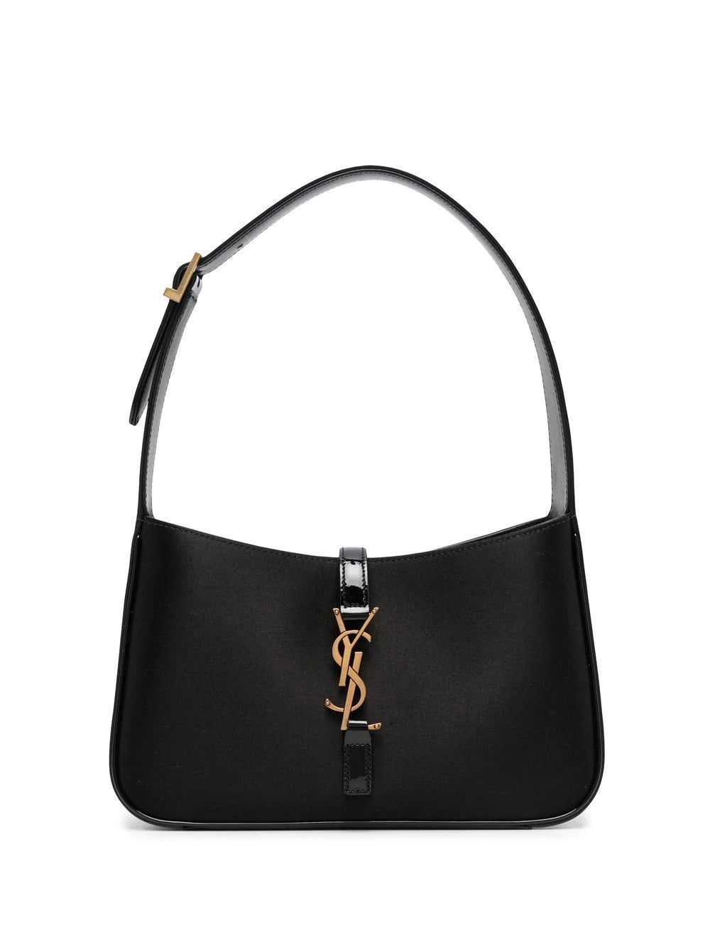 Launched in 2021, Saint Laurent's 5 à 7 shoulder bag was designed by Anthony Vaccarello to showcase the brand's impeccable timeless style. The modern silhouette is imbued with retro influences, appearing here in black satin and simply adorned with the iconic YSL plaque in a polished gold tone.