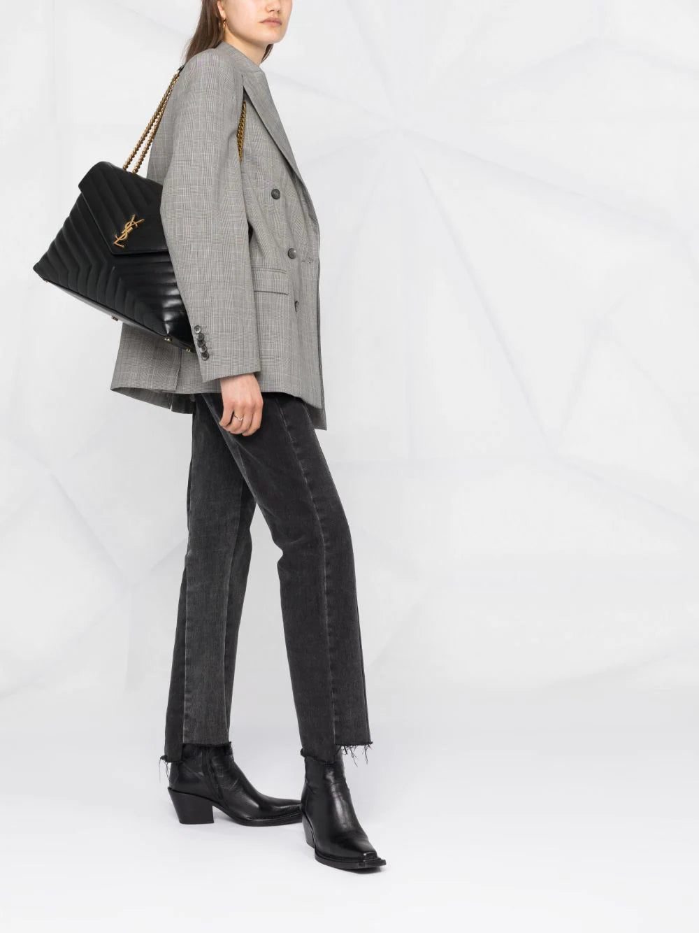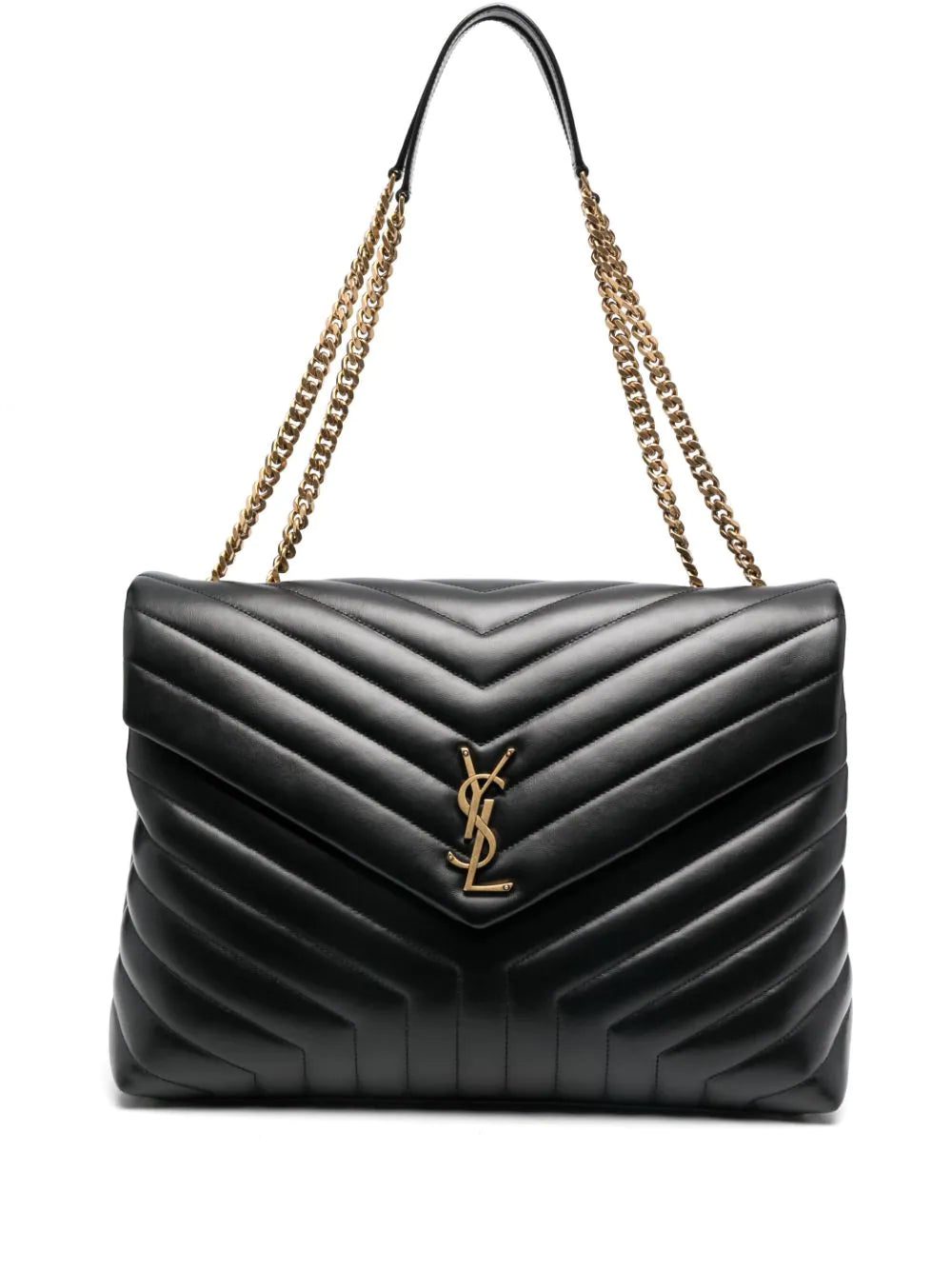 One of Saint Laurent’s most iconic designs, the Loulou shoulder bag carries the label’s sense of typical Parisian refinement. Seen here in a larger iteration for added storage space, this piece has been accented with the brand’s signature YSL plaque, echoed by gold-tone hardware.