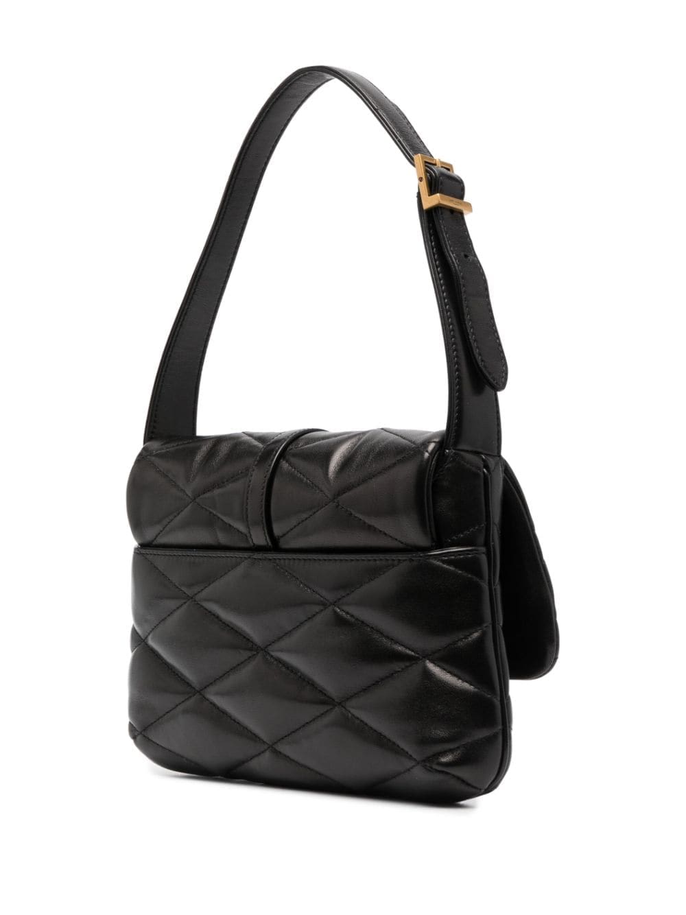 The Le 57 bag is defined by two Saint Laurent signatures: intertwining logo hardware and carré-quilted overstitching. This one's crafted from smooth black lambskin with an adjustable shoulder strap.