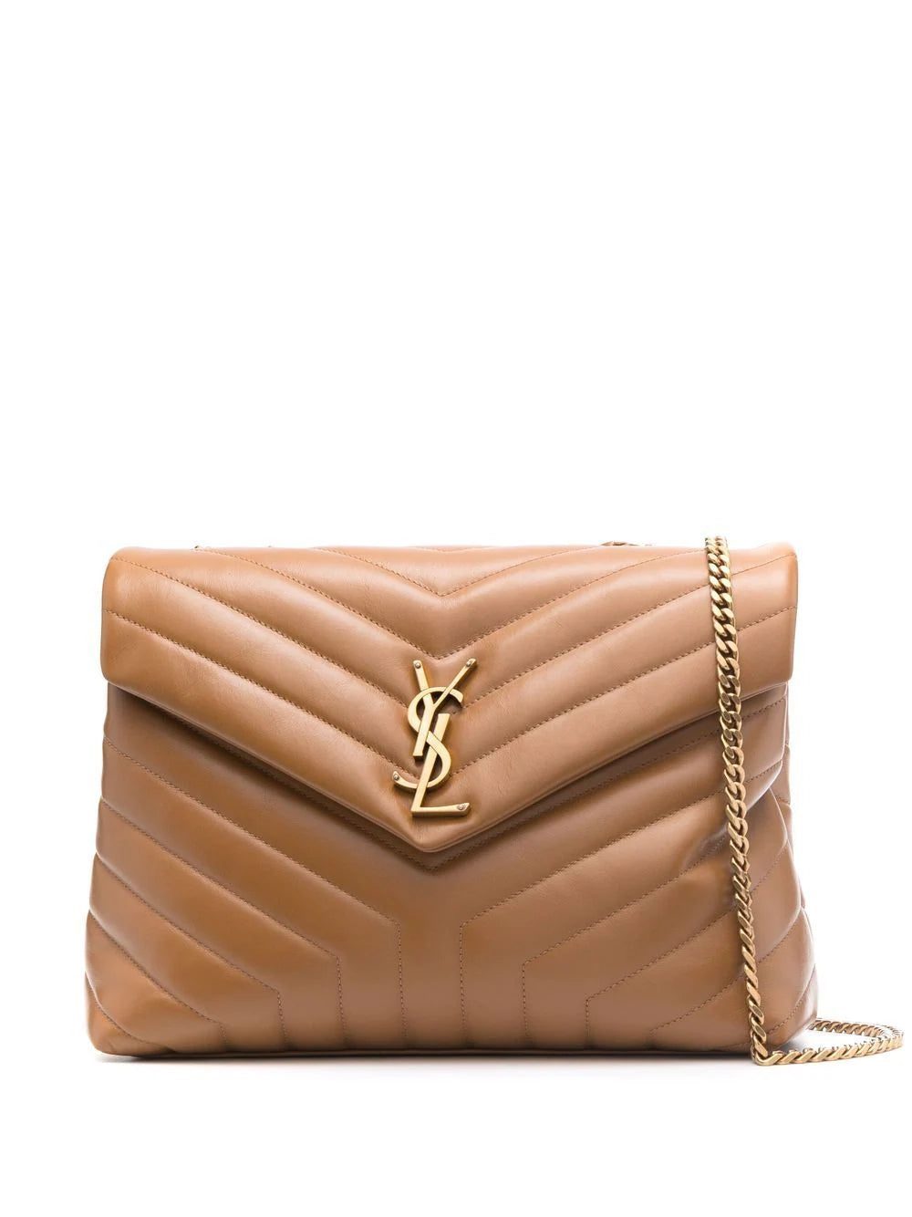 Named after one of Yves Saint Laurent's muses Loulou de la Falaise; this medium-sized LouLou shoulder bag is designed in tan brown chevron-quilted leather. Boasting a stylishly organised interior, the wear-everywhere design boasts the brand's iconic YSL insignia to the front.