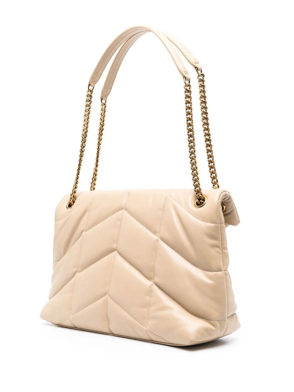 First introduced in 2019, the puffer design of Saint Laurent's Loulou bag presents a padded take on the quilted bag. It features all the classic detailing, such as the chevron pattern and envelope-style foldover flap.