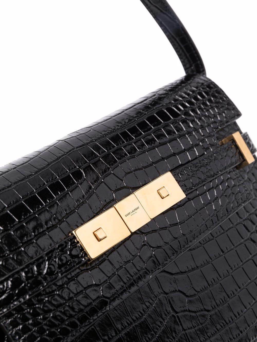Saint Laurent’s timeless sense of refinement is seamlessly captured by the Manhattan tote bag and its elegant leather design. Presented in a classic black hue, the accessory is accented with gold-tone detailing for a polished look.