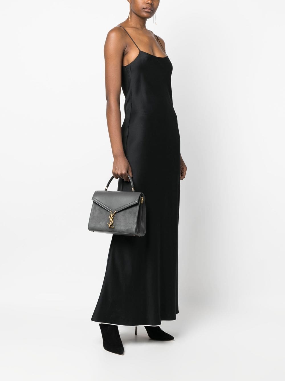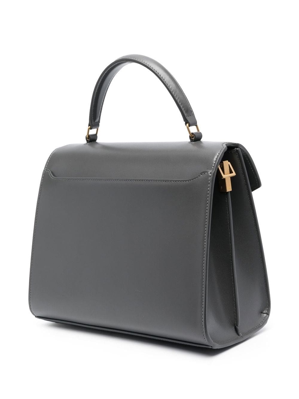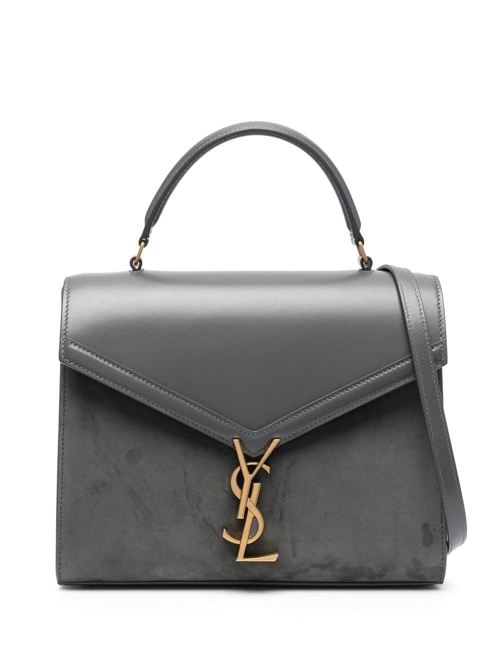 Crafted from smooth grey leather, this Saint Laurent top-handle bag is designed as a tribute to graphic designer Adolphe Jean-Marie Mouron, otherwise known as Cassandra, who designed the iconic 'YSL' monogram in 1961.