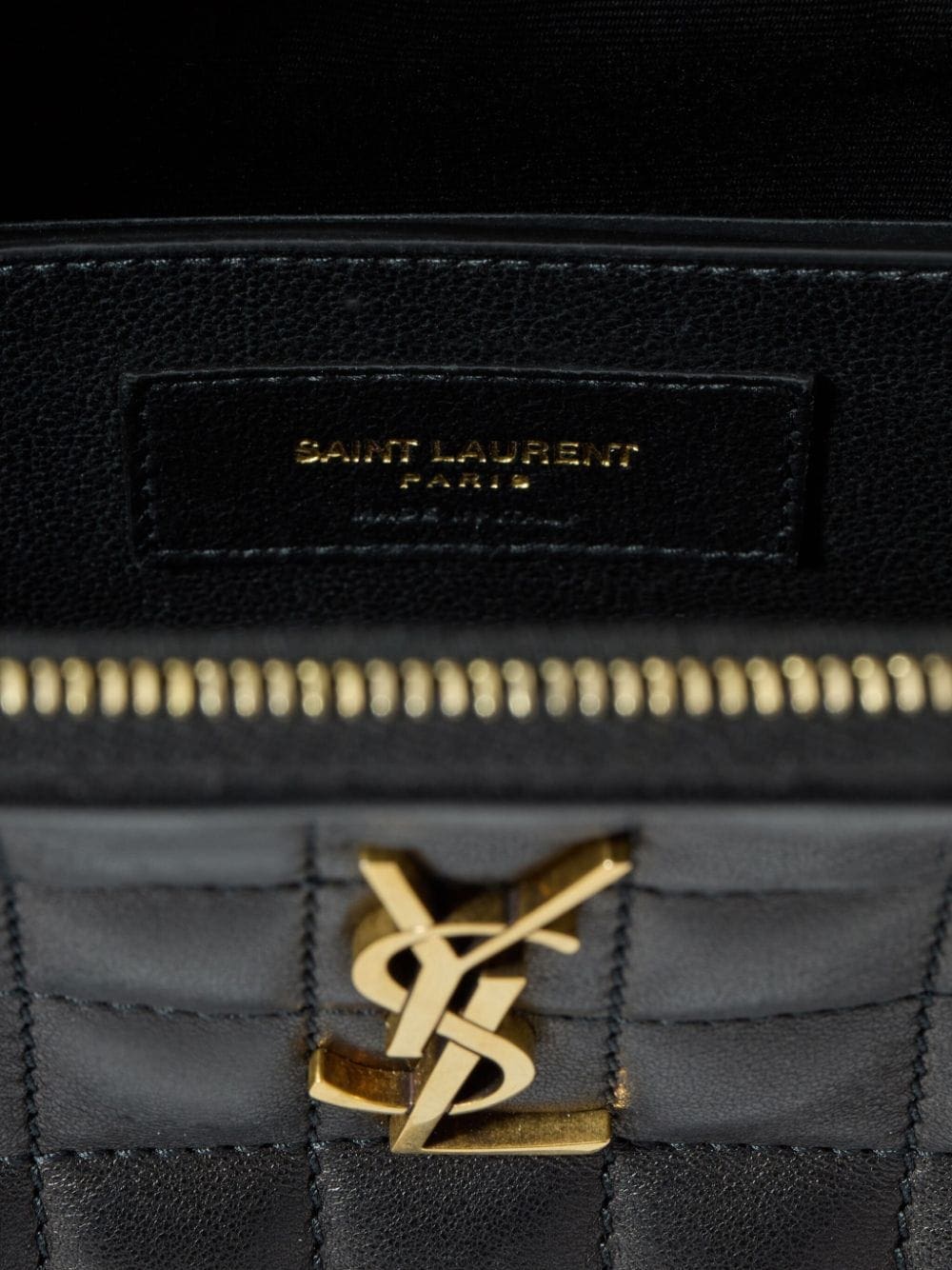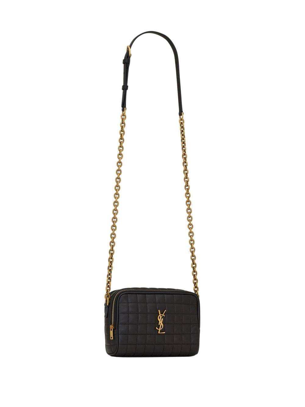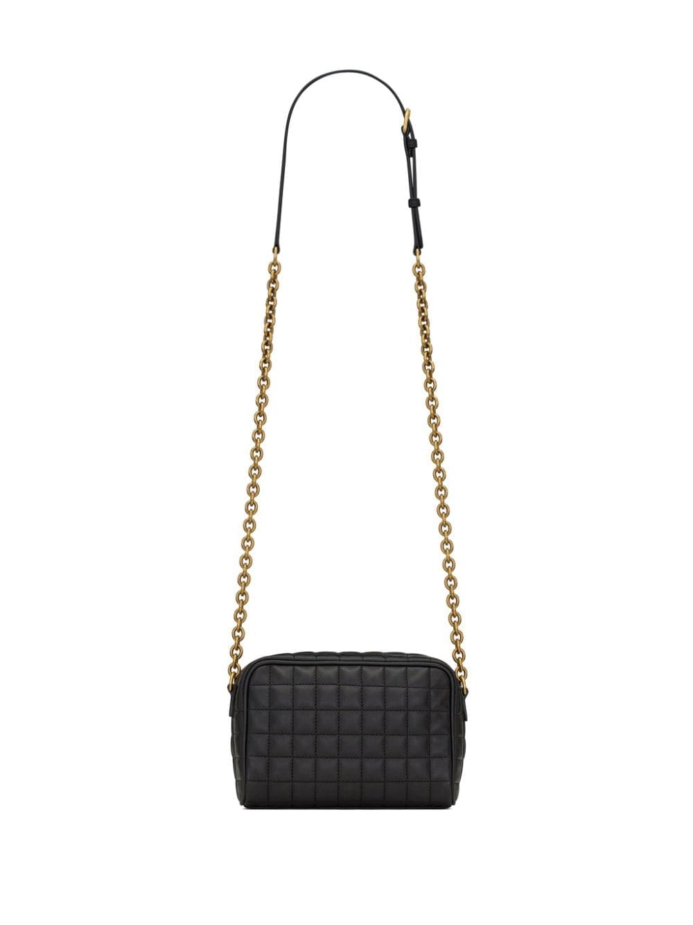 Quilted in matelassé with a grid pattern, this Saint Laurent camera bag demonstrates the brand's perfect fusion of timeless and contemporary. The leather accessory is elevated by its refined gold-tone hardware, including an iconic Cassandre plaque on the front.
