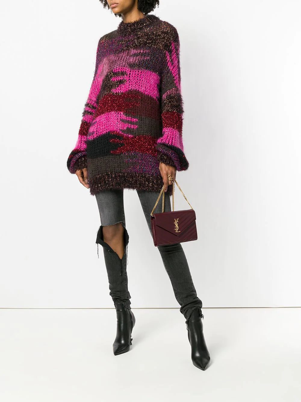 SAINT LAURENT 377828BOW01 6475 BURGUNDY Calf Leather