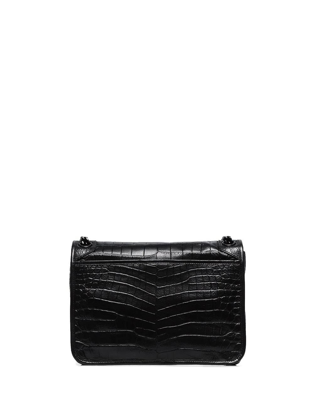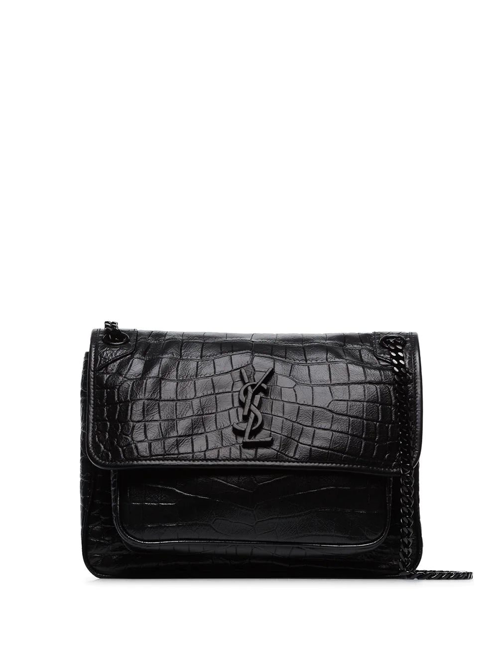 Are you off on safari? Then look the part with this exotic crocodile embossed effect leather Niki medium shoulder bag from Saint Laurent. All you need now is a khaki ensemble and your good to go. Featuring a foldover top with magnetic closure, an internal zipped pocket, a front logo plaque, a chain shoulder strap and an embossed crocodile effect.