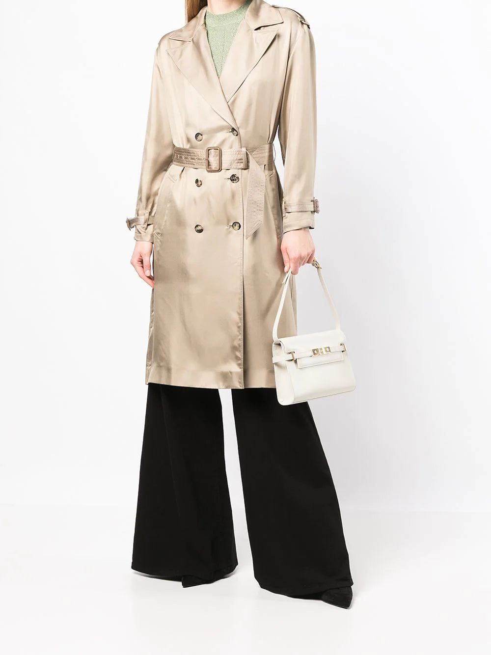 This small Manhattan shoulder bag from Saint Laurent is a sleek way to organise essentials. Crafted from smooth calf leather, this slim accessory is fastened via a gold-tone magnetic clasp.
