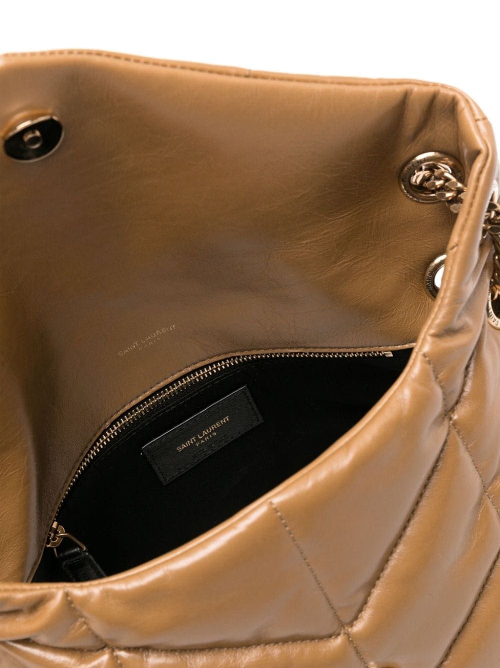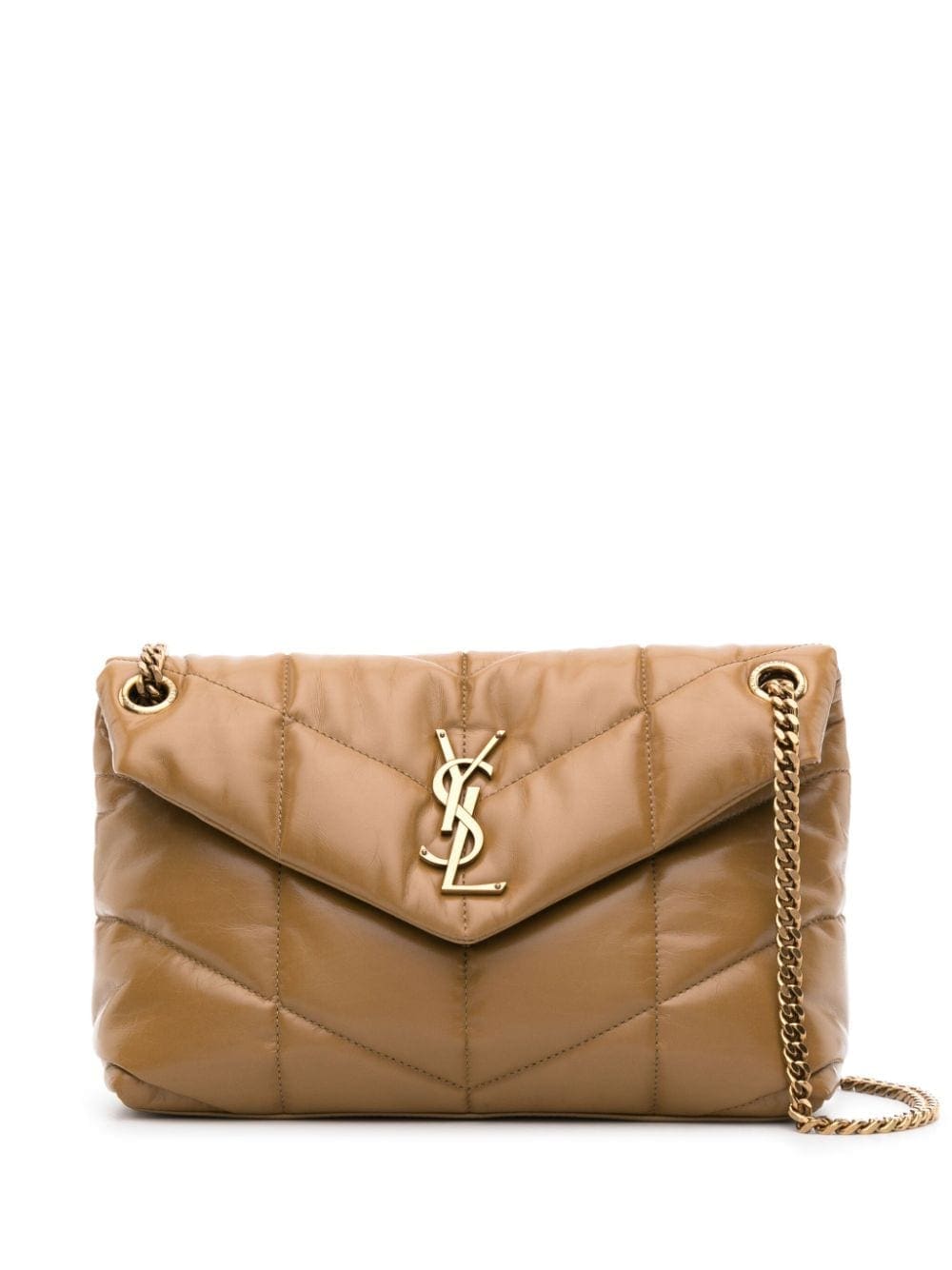 This small iteration of Saint Laurent's Puffer shoulder bag boasts a quilted construction. Made from smooth brown leather, it's shaped to a foldover silhouette and signed off with signature Cassandre hardware.