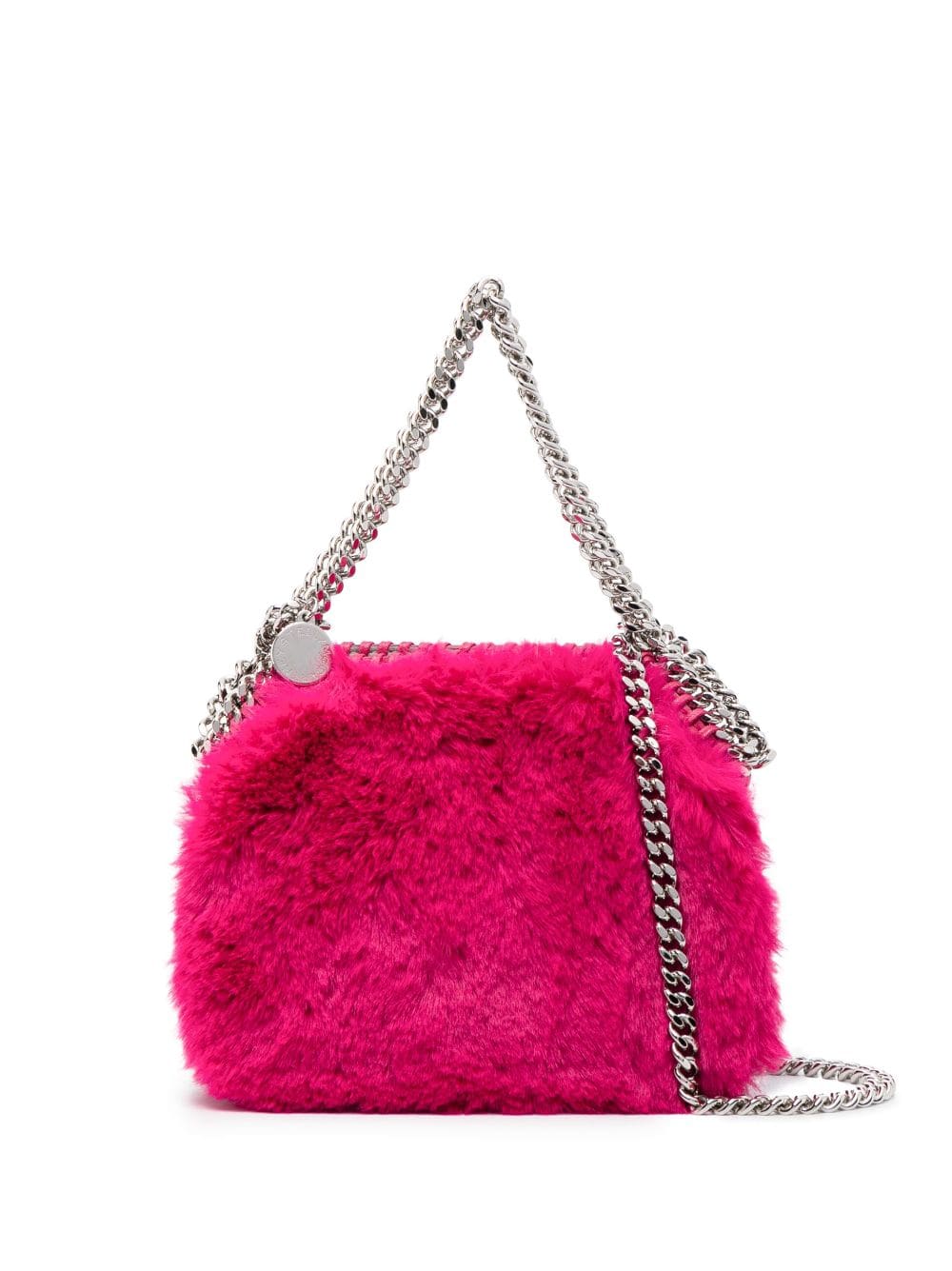 Diamond-cut whipstitch chain trim immediately identifies this bag as Stella McCartney's Falabella tote. Meanwhile, the faux-fur construction transforms the original design by lending it a fuzzy, tactile quality.