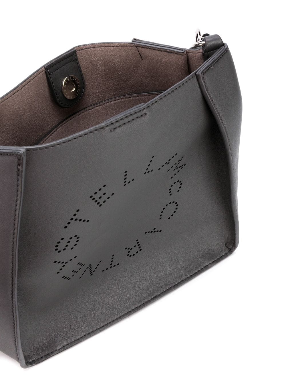 Logomania but make it elegant. Showcase your love for Stella McCartney with this slate grey faux leather mini Stella Logo crossbody bag. Don't forget your keys and wallet.