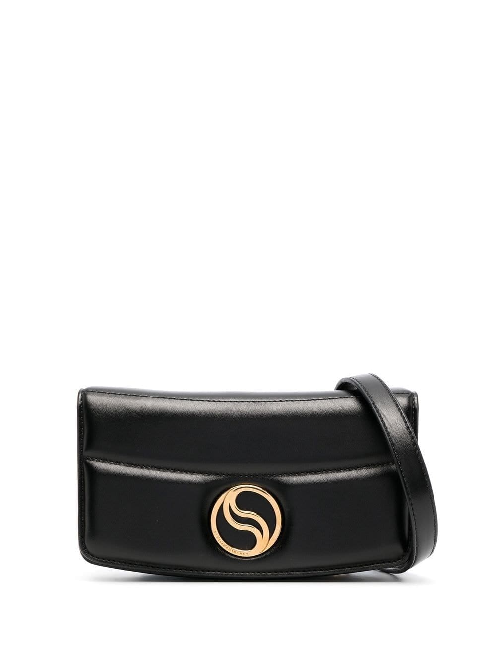 black gold-tone logo plaque foldover top with magnetic fastening adjustable shoulder strap main compartment Conscious: We've partnered with Good On You – an ethical agency that rates how sustainably brands perform. This product comes from a brand that performs well in relation to their impact on animals.