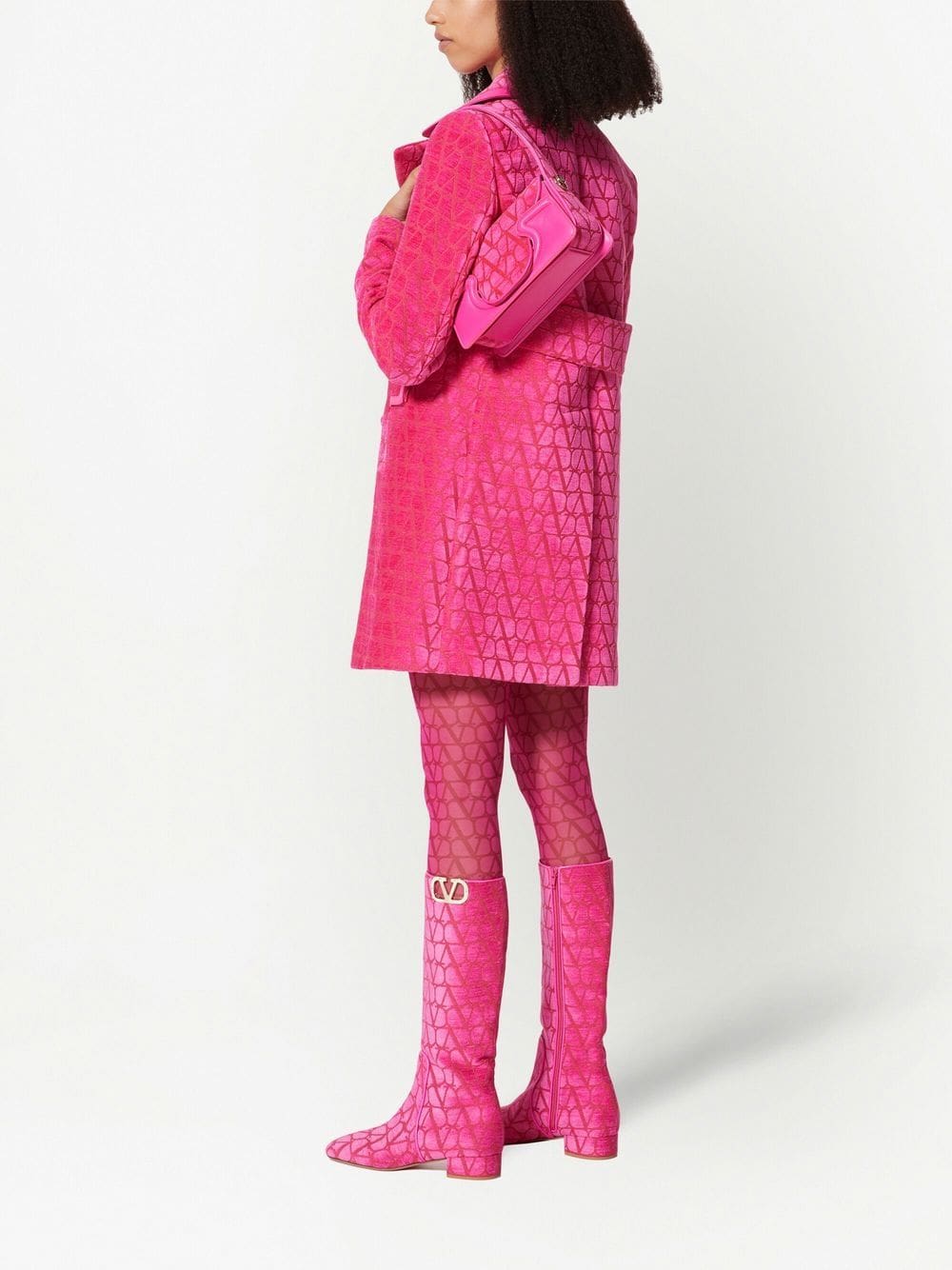 Valentino Garavani's Le Petit Deuxième shoulder bag references ‘90s styles. Rendered in signature Toile Iconographe, it features an elongated silhouette and curved flap opening, further contributing to the retro feel.