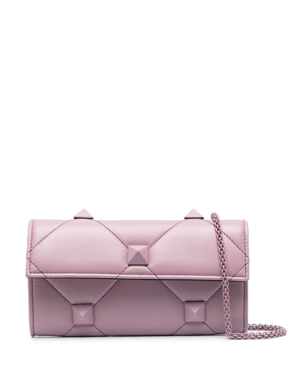 Introduced in 2020, Valentino Garavani's Roman Stud is an enlarged version of the brand's iconic Rockstud embellishment. Tonal versions adorn this bag, which is crafted from smooth lilac leather and fitted with a detachable chain shoulder strap.
