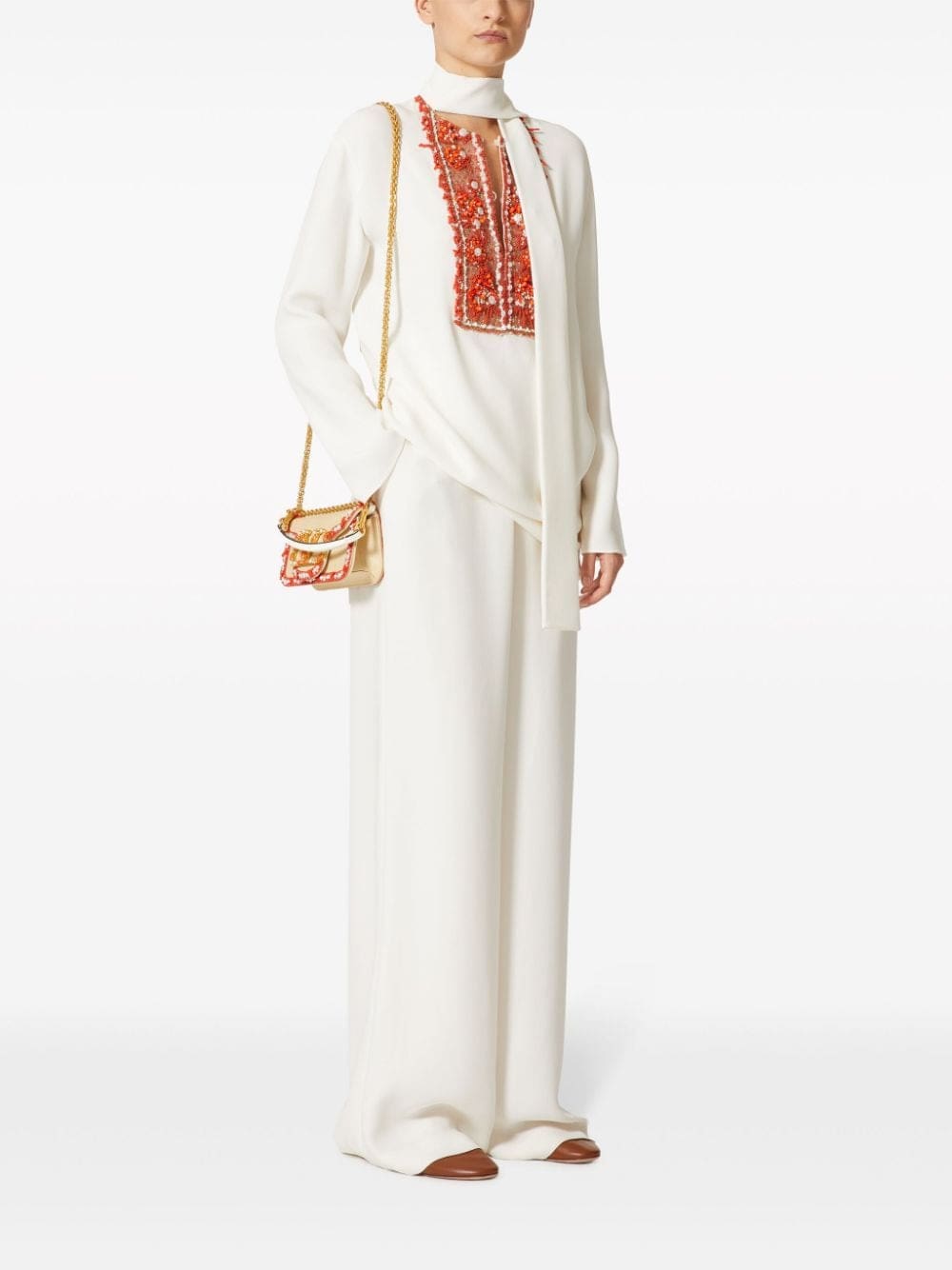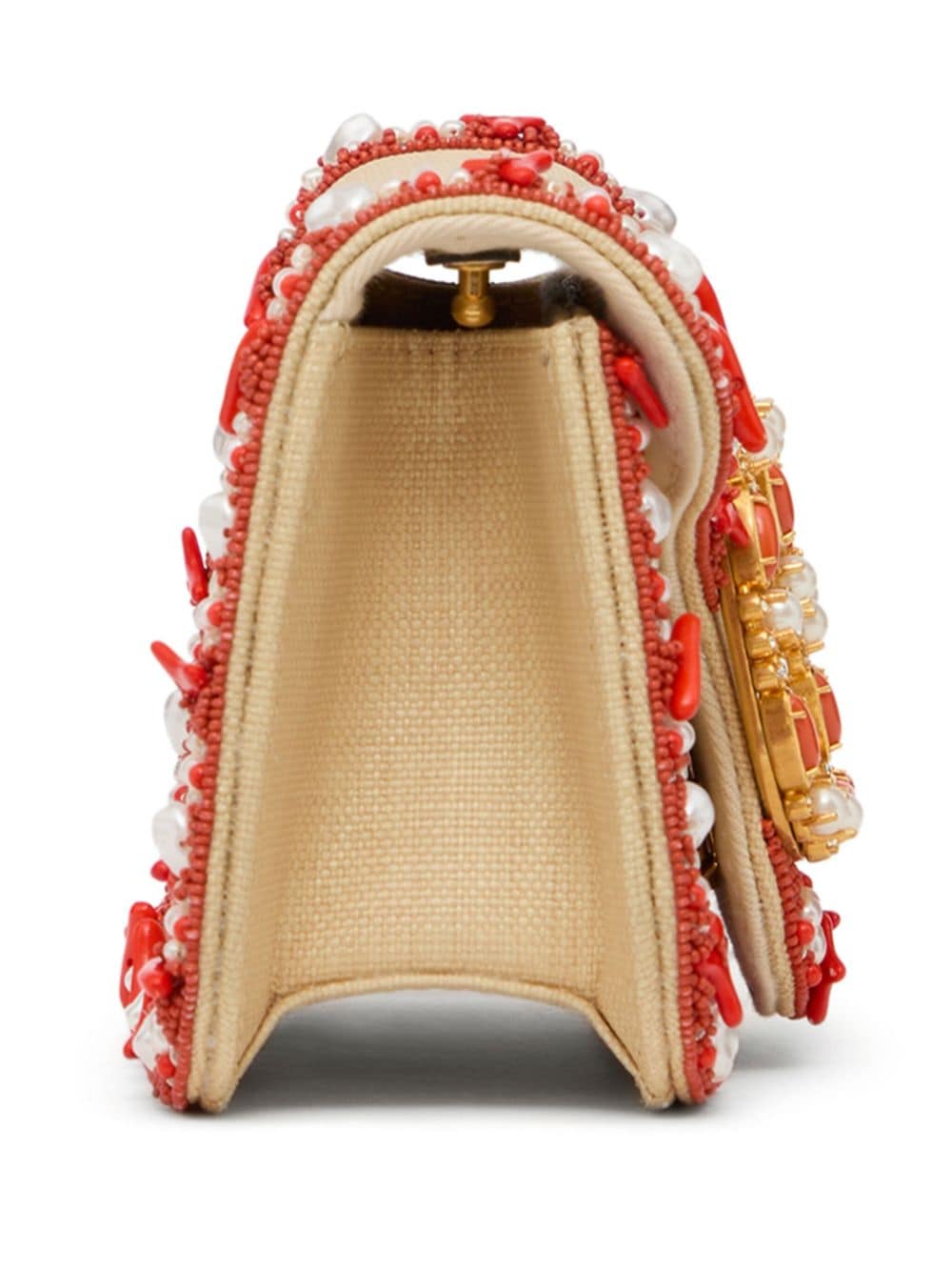 This small version of Valentino Garavani's Locò bag is woven from faux raffia and trimmed with coral charms, faux pearls and beads to reinforce its beachy sensibilities. The equally embellished VLogo Signature plaque at the front is cast in gold-tone metal to match the detachable chain-link strap.