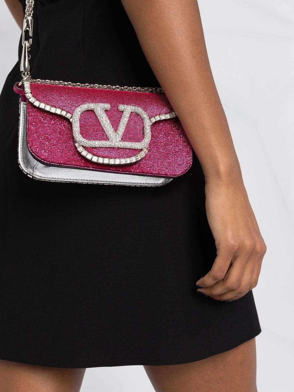 Valentino Garavani's clutch honours the brand's iconic VLogo Signature - this glittering pink sequinned iteration is accented with a crystal-embellished VLogo at the centre. A versatile design, it can also be worn over one shoulder thanks to the detachable chain strap.