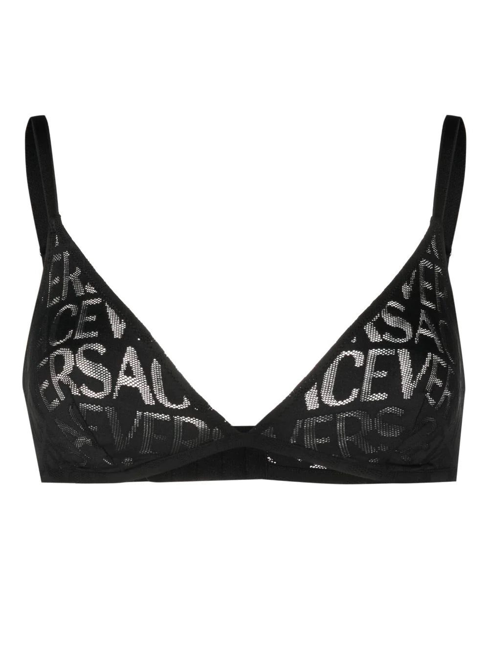 Crafted in a mesh design, this Versace triangle bra is emblazoned with the iconic Allover logo lettering, reflecting a penchant for bold branded aesthetic.