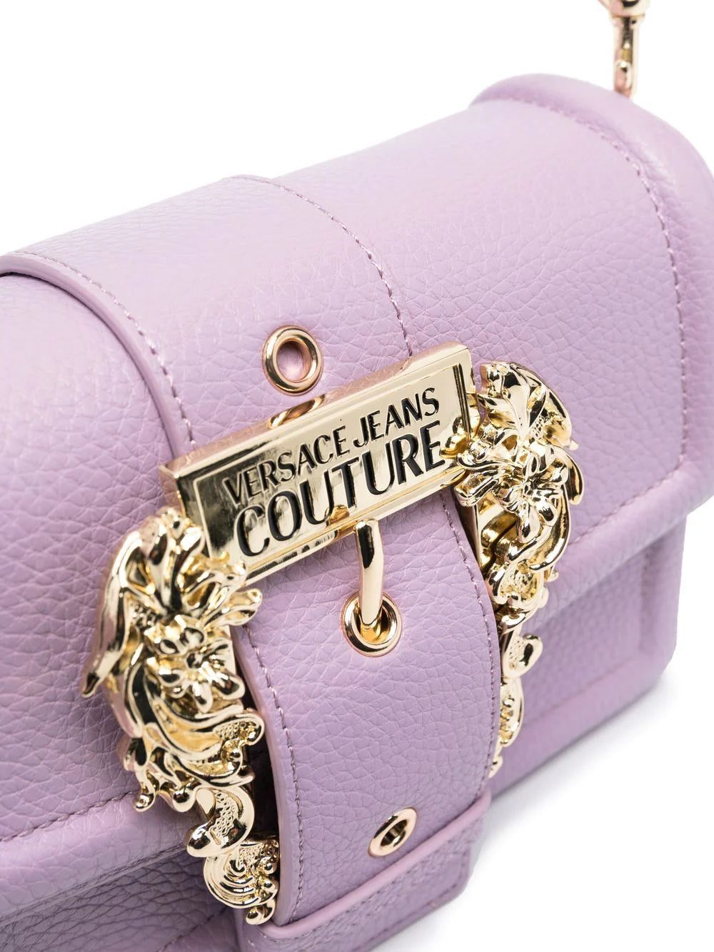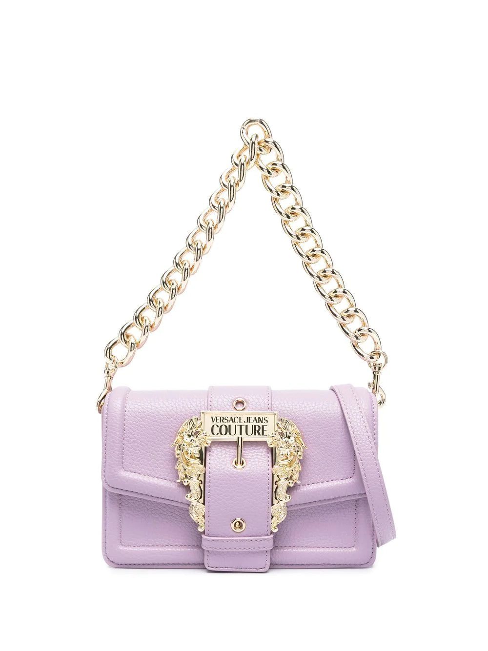 Versace Jeans Couture channels the mainline's high-octane spirit in the vibrant construction of this shoulder bag. Presented in a soft lilac-purple hue, it's decorated with an engraved Baroque buckle that lends a nod to the Italian house’s unmistakably confident aesthetic.