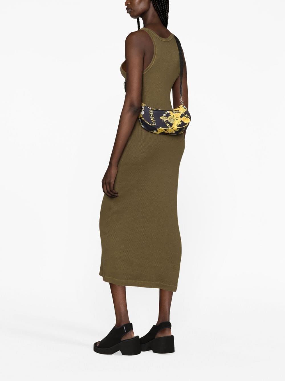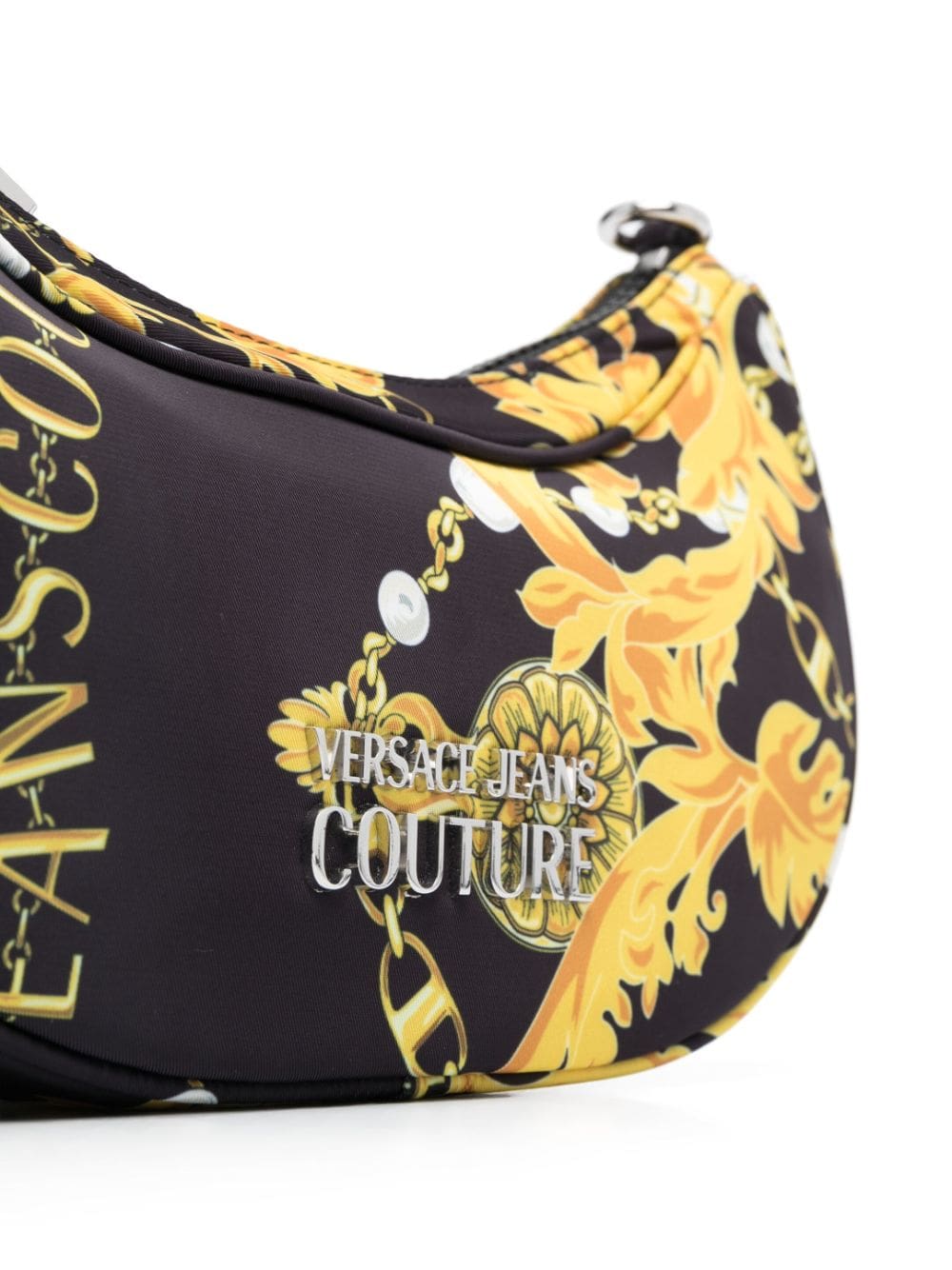 Versace Jeans Couture adds its stamp to this crossbody bag from its AW23 collection. Presented in black and gold hues, the crescent silhouette is adorned with the Italian brand's signature 'Chain Couture' pattern all over for a distinctive finish.