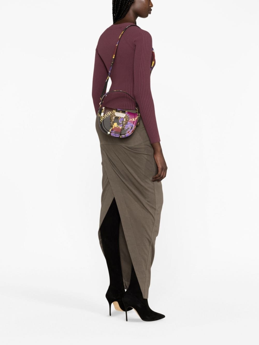 Instantly recognisable as a Versace Jeans Couture creation, this faux-leather bag is adorned with the brand's Chain Couture print, evoking the brand’s baroque inspiration. The curved silhouette is suspended by a top handle and an adjustable, detachable shoulder strap for custom styling.