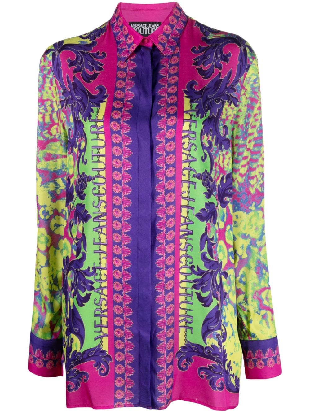 Vibrant and bold, Versace Jeans Couture's signature aesthetic is on display with this shirt. It boasts an eye-catching colourway with an all-over graphic print and features logo detailing throughout.