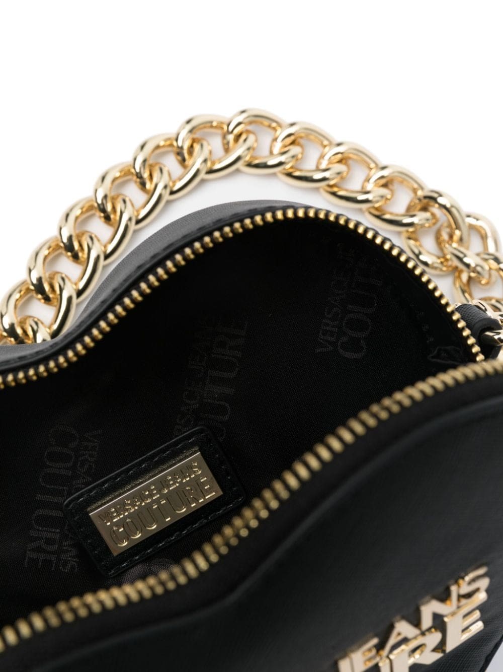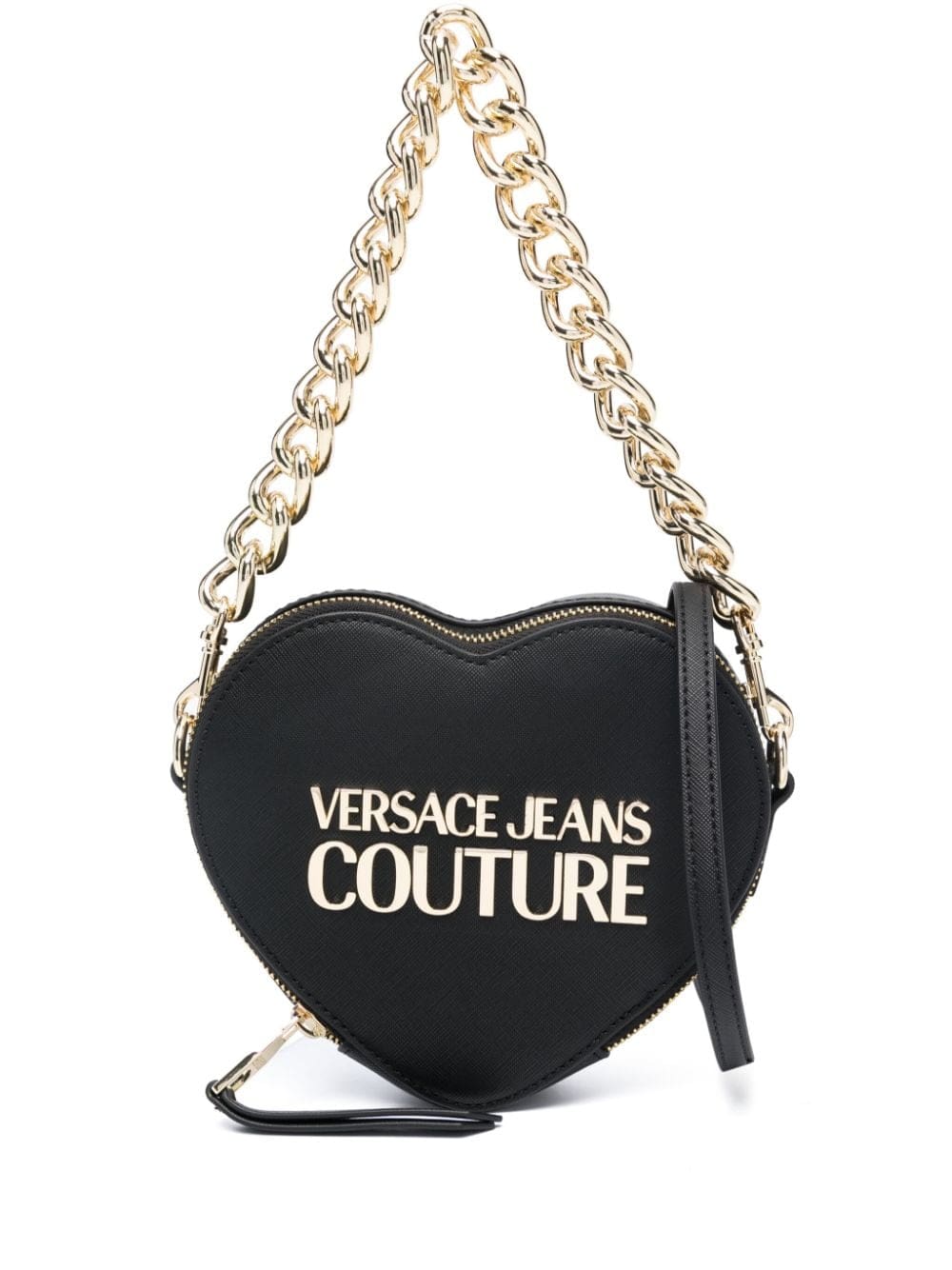 This black bag from Versace Jeans Couture is characterised by its playful heart-shaped silhouette. It's detailed with a gold-tone logo plaque and a matching chain-link shoulder strap.