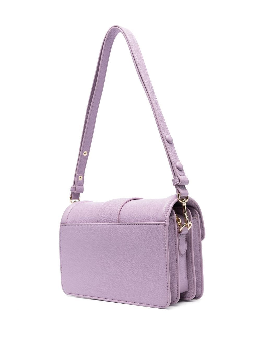 lilac purple faux leather grained texture gold-tone logo plaque decorative buckle detailing gold-tone hardware foldover top with magnetic fastening adjustable detachable shoulder strap top zip fastening partitioned compartment rear magnetic-fastening pocket slip pocket to the front This piece comes complete with a protective dust bag.