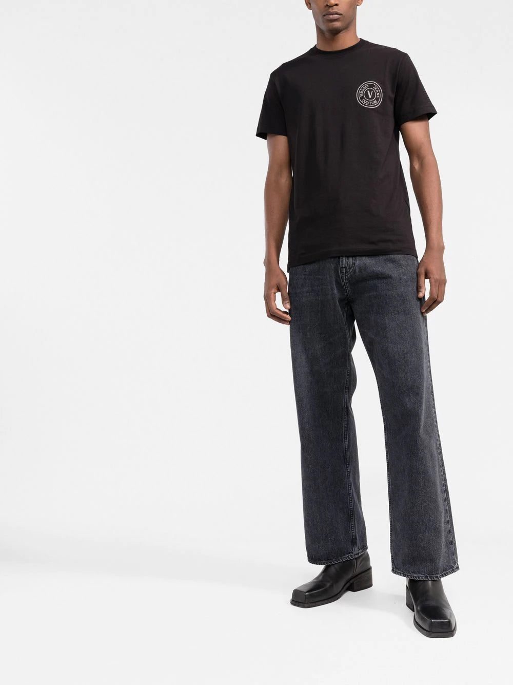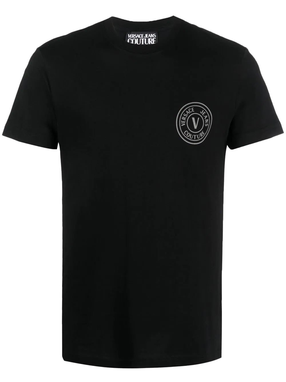 Versace Jeans Couture opts for subtle branding with this cotton tee for AW22. The dark black fabrication is simply finished with a grey rounded logo at the chest.