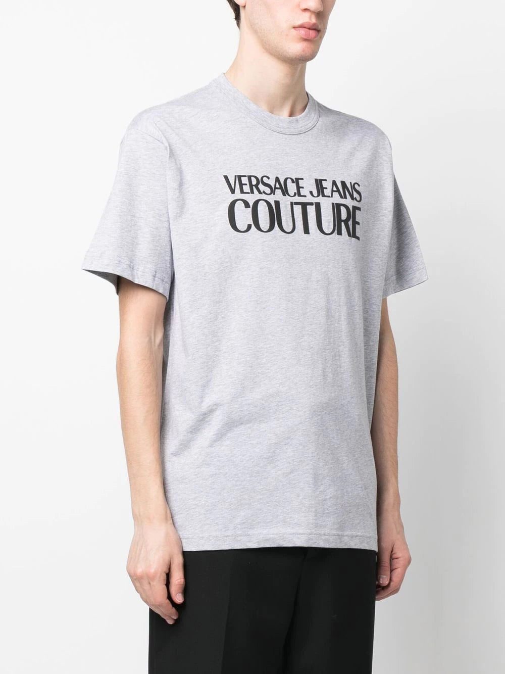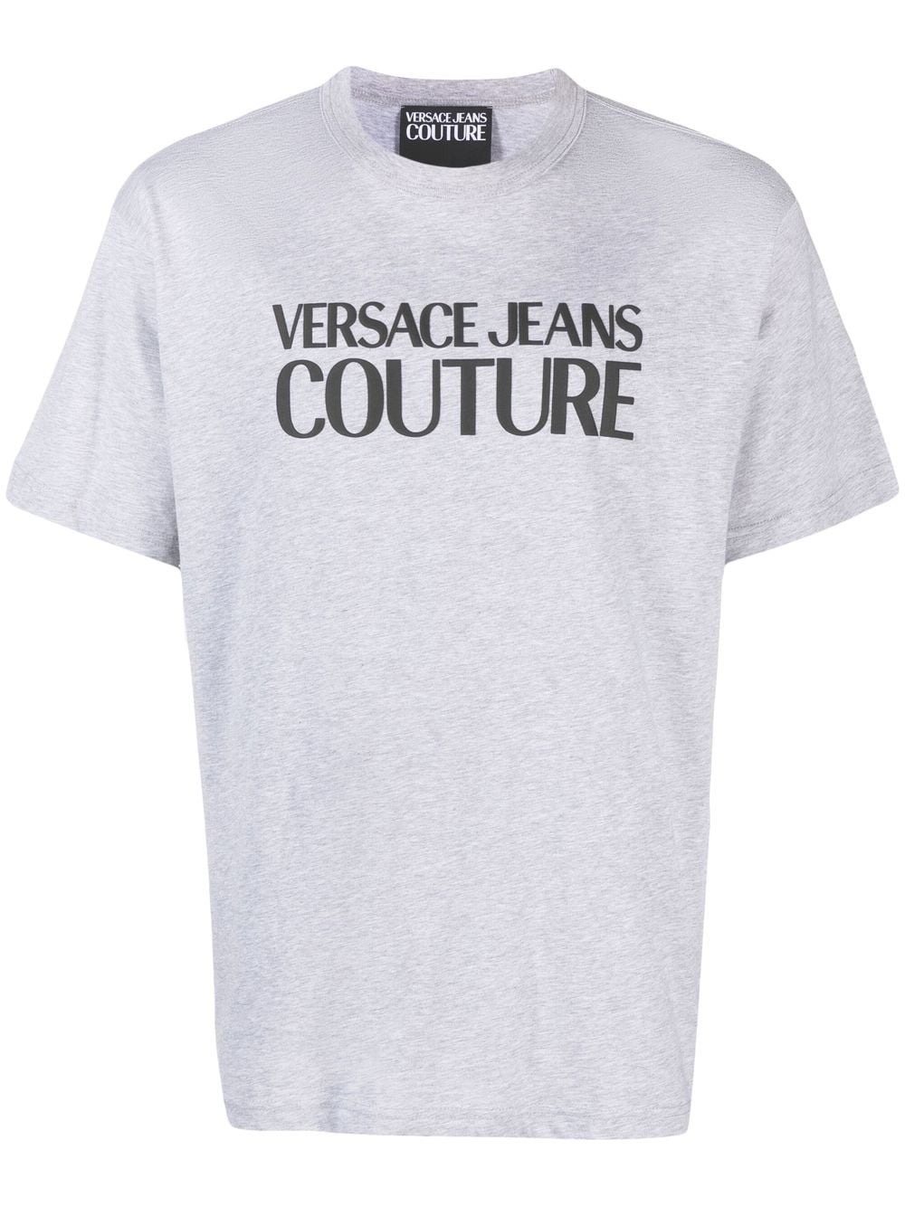 Designed in a grey hue, this cotton T-shirt from Versace Jeans Couture features a contrasting black logo at the chest. The branding stands out against the vivid background for an unmistakable finish.