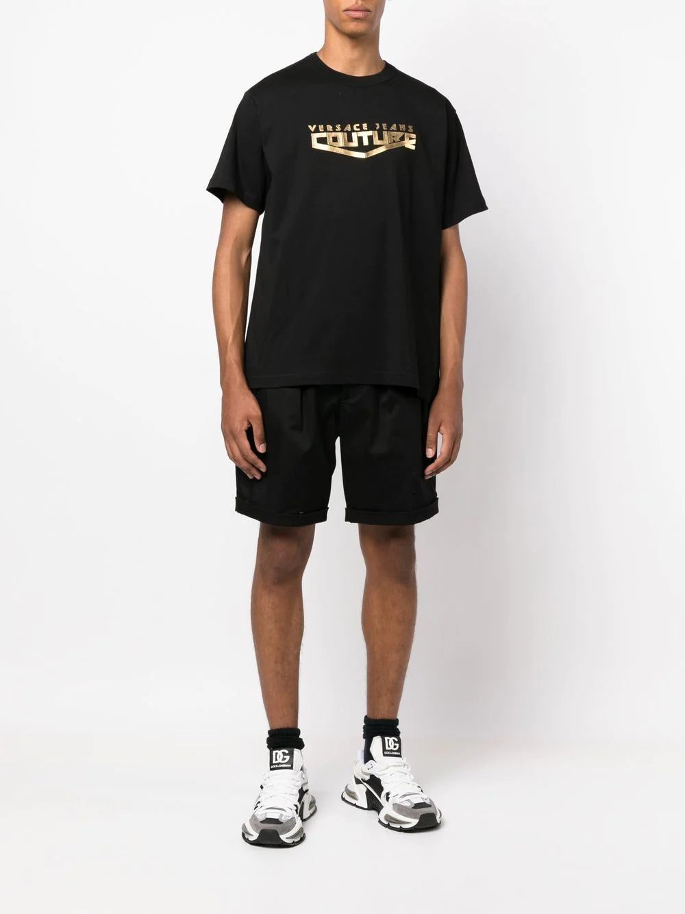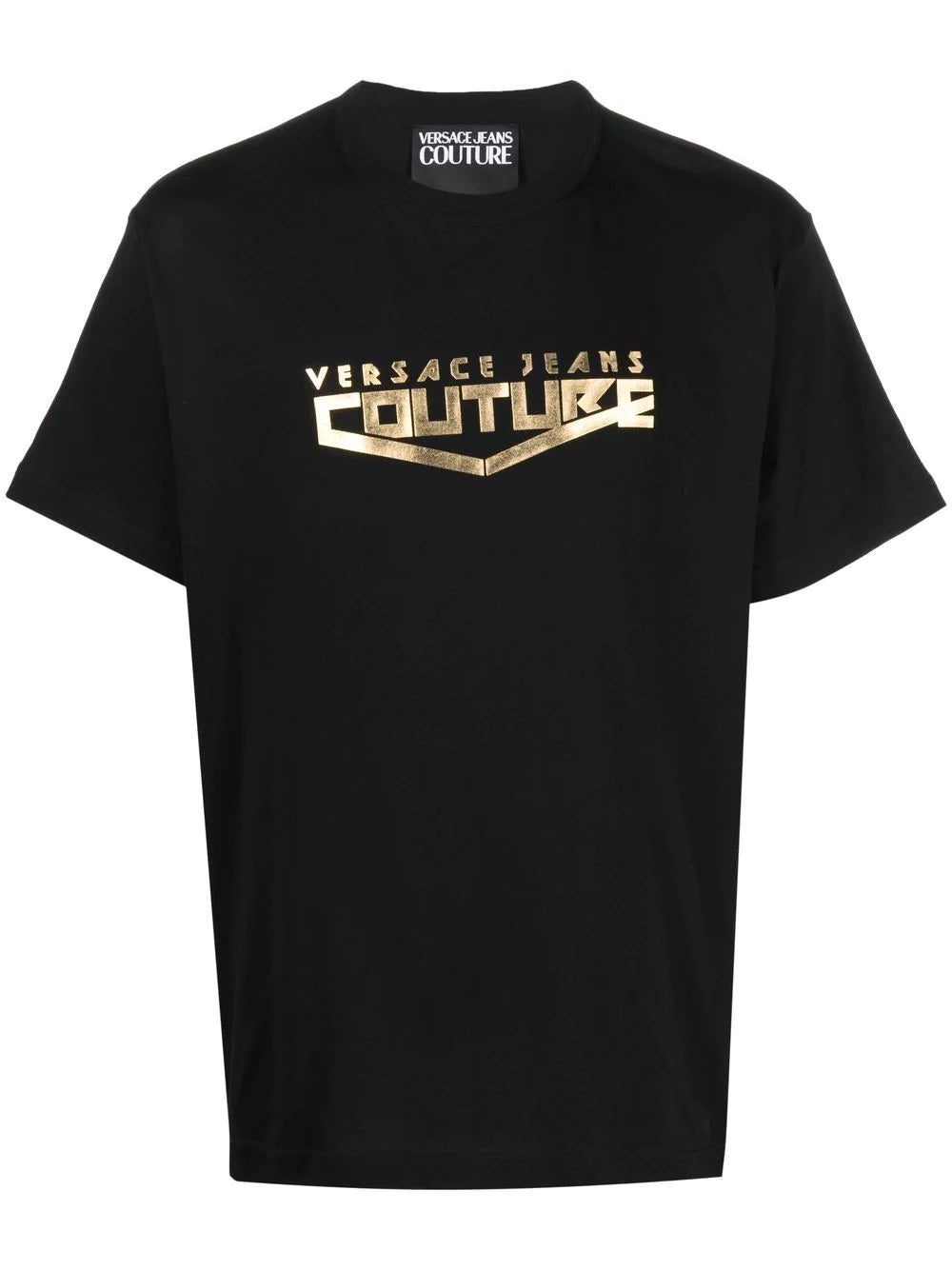 Versace Jeans Couture adds their bold aesthetic to this classic black T-shirt in the form of the gold-foil logo print at the chest.