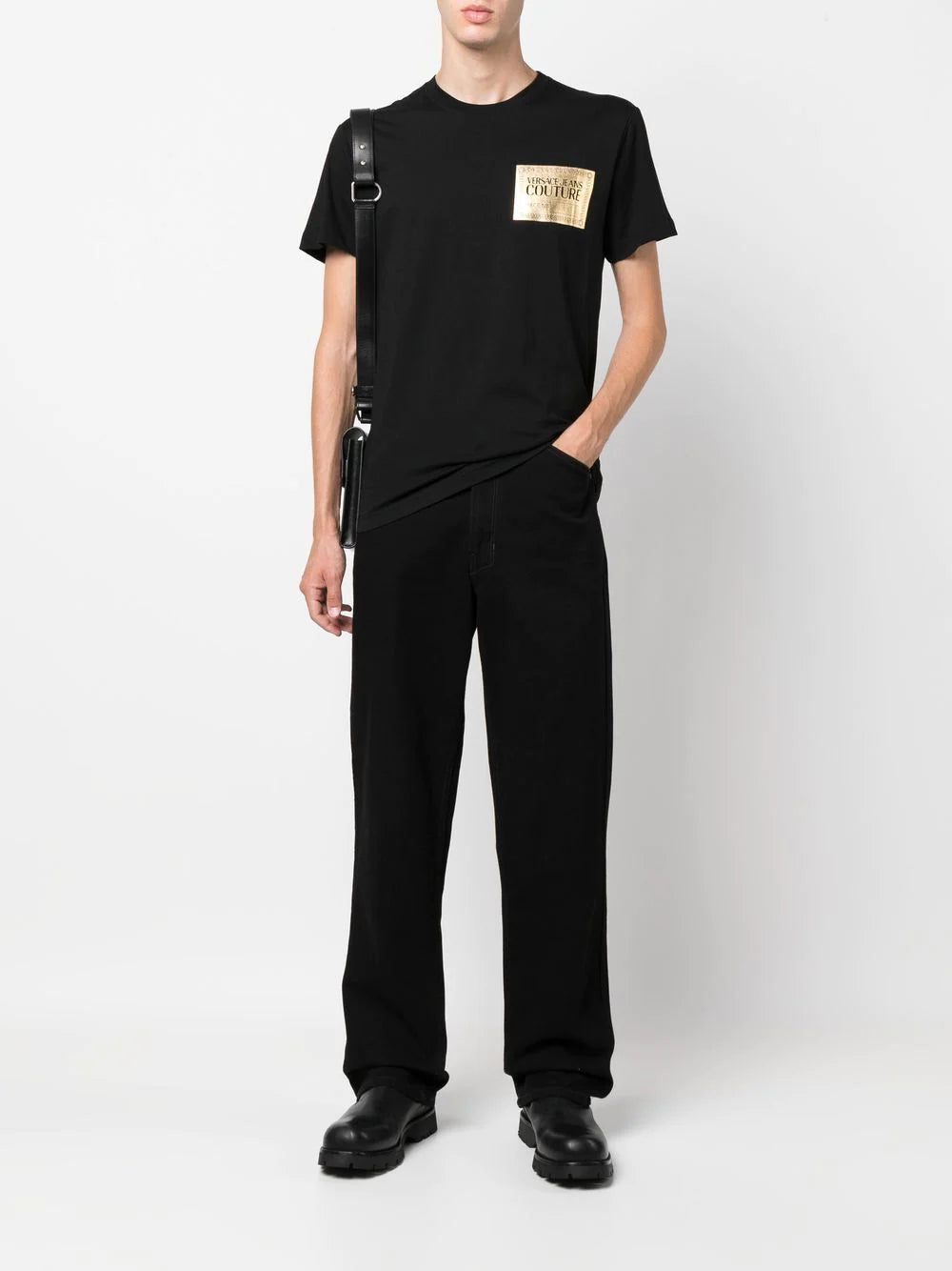 Versace Jeans Couture updates a classic silhouette with its signature branding. The label's logo print stands out against gold-tone detailing, allowing it to take the central focus of this casual design.