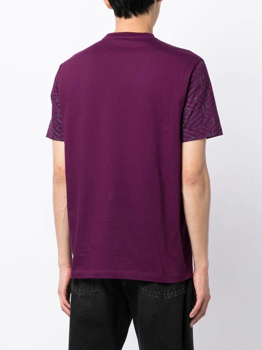 logo crew-neck T-shirt from Versace featuring plum purple, cotton, logo print at the chest, crew neck and short sleeves.