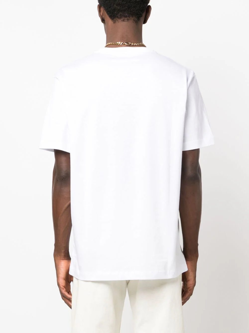 Paying homage to its roots, this white cotton Versace T-shirt is embroidered with an abbreviated version of the original ‘80s moniker at the front, which formerly included the eponymous founder’s first name.